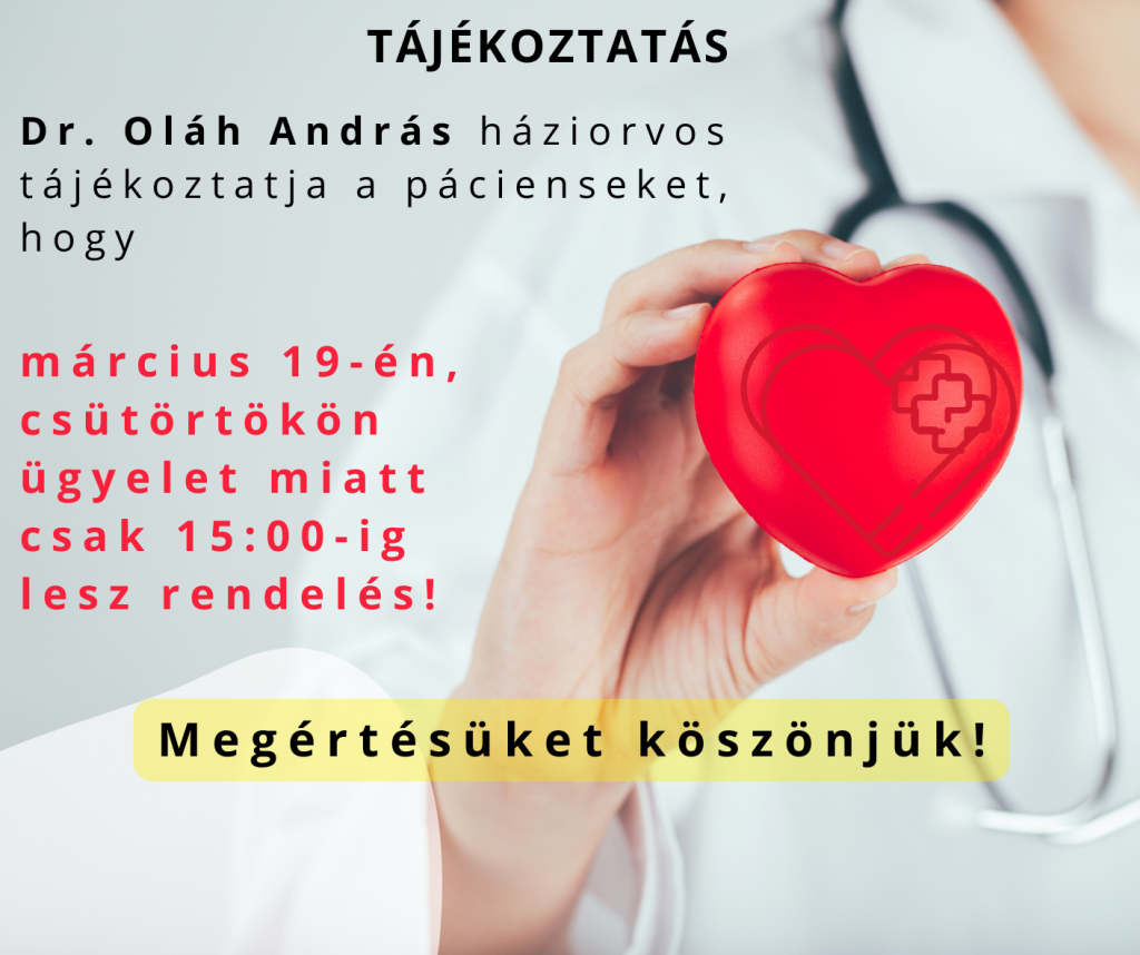 Ügyelet miatt rövidebb ideig lesz háziorvosi rendelés