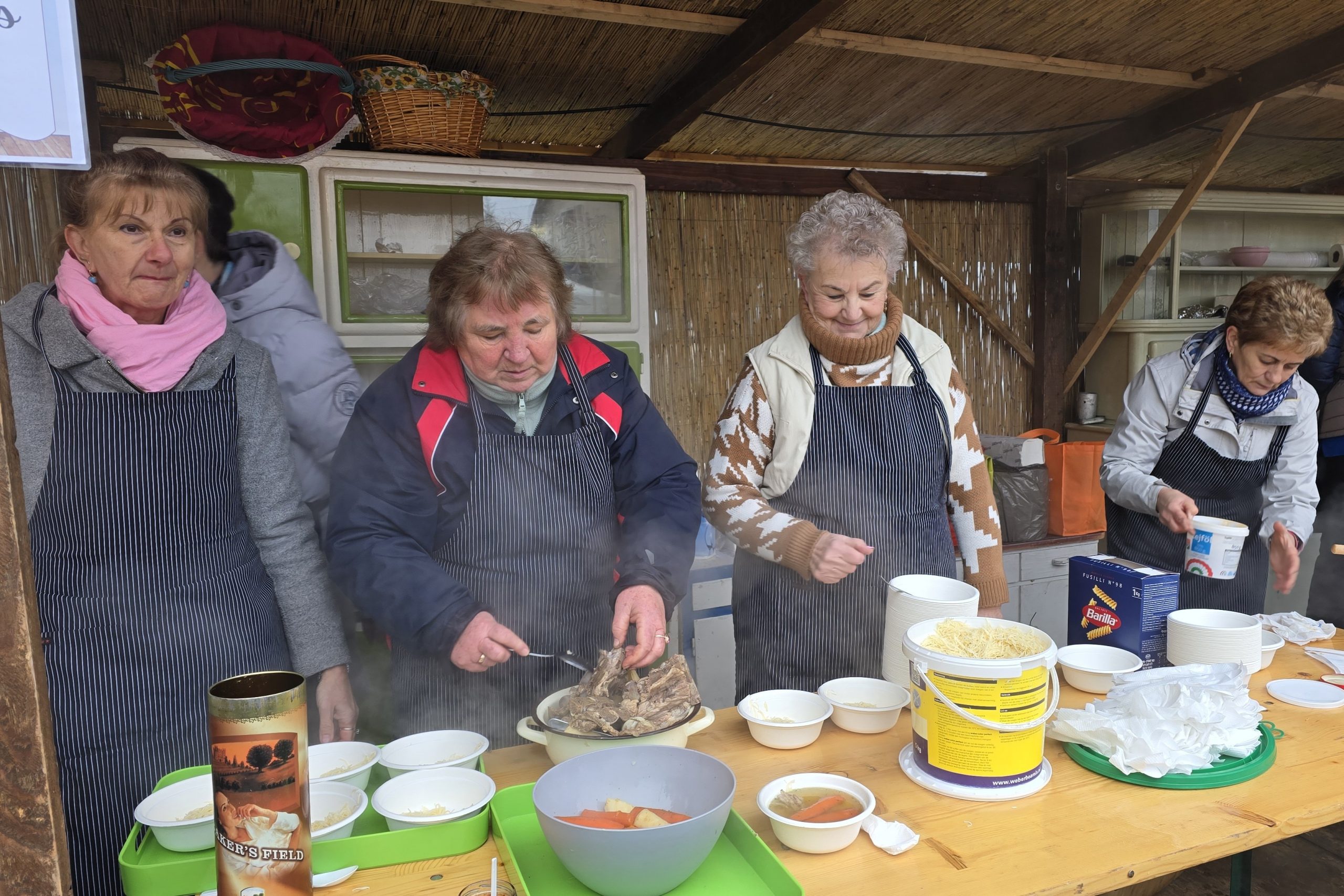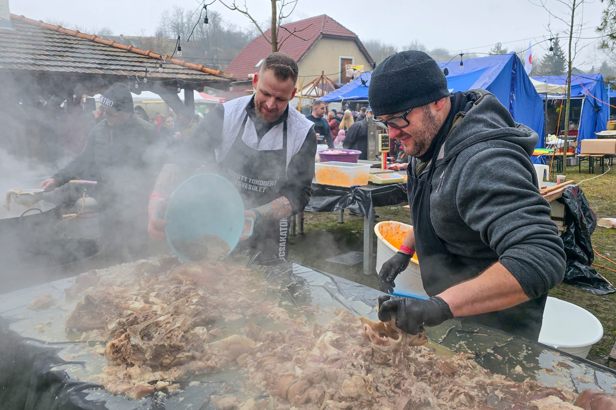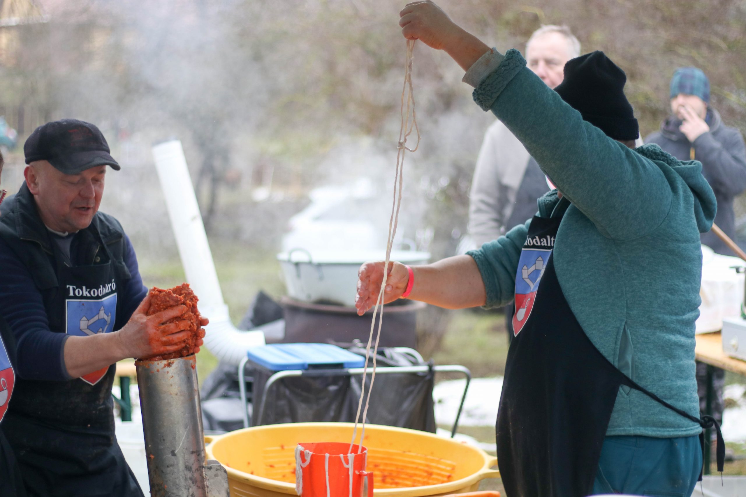 A nap folyamán bőséges mennyiségű kolbász és hurka készült, az egyes sátraknál hortobágyi káposztát, velős pirítóst, toroskáposztát, orjalevest és további finomságokat is meg lehetett kóstolni. Mindezekhez savanyúság, forró tea, forralt bor és pálinka is dukált, a kesztölci Velmo Tanya jóvoltából még sajtkülönlegességeket is fogyaszthattunk.