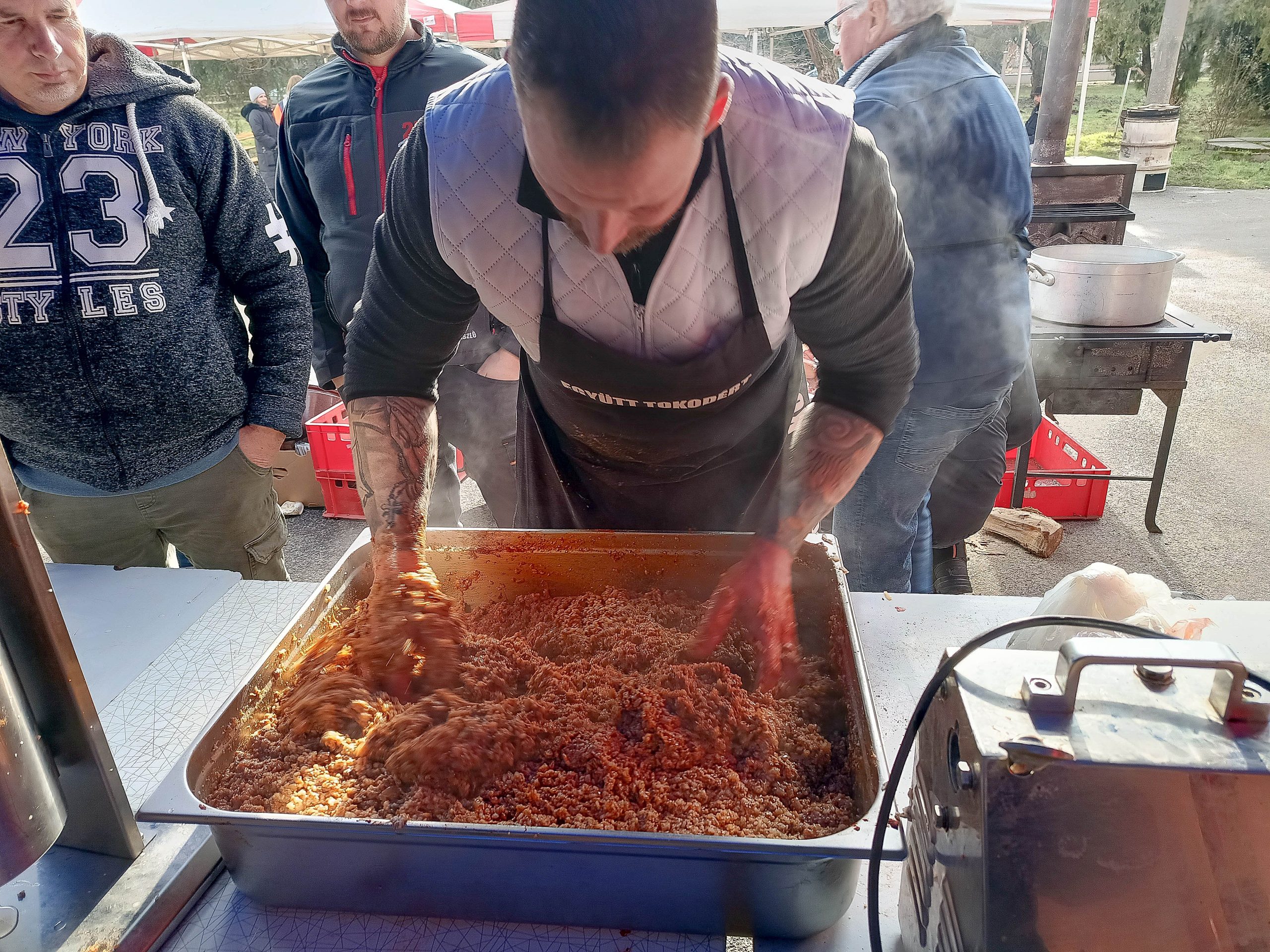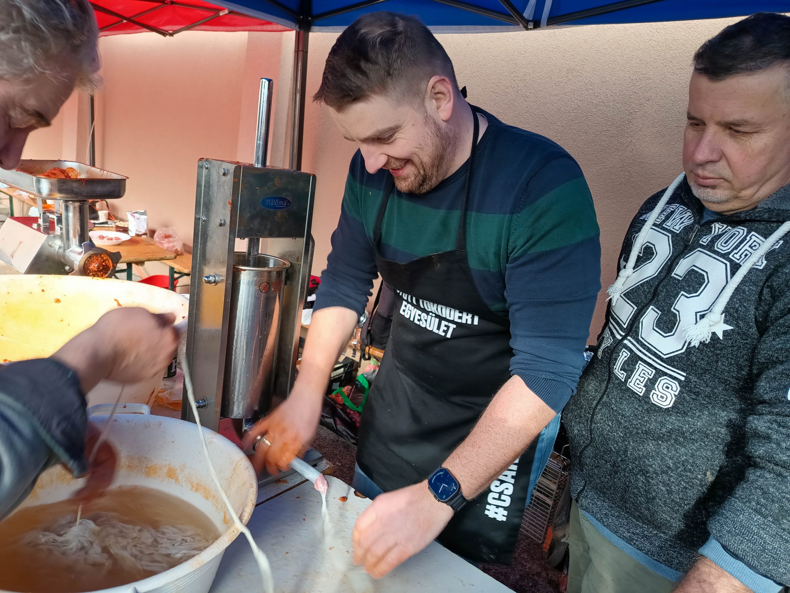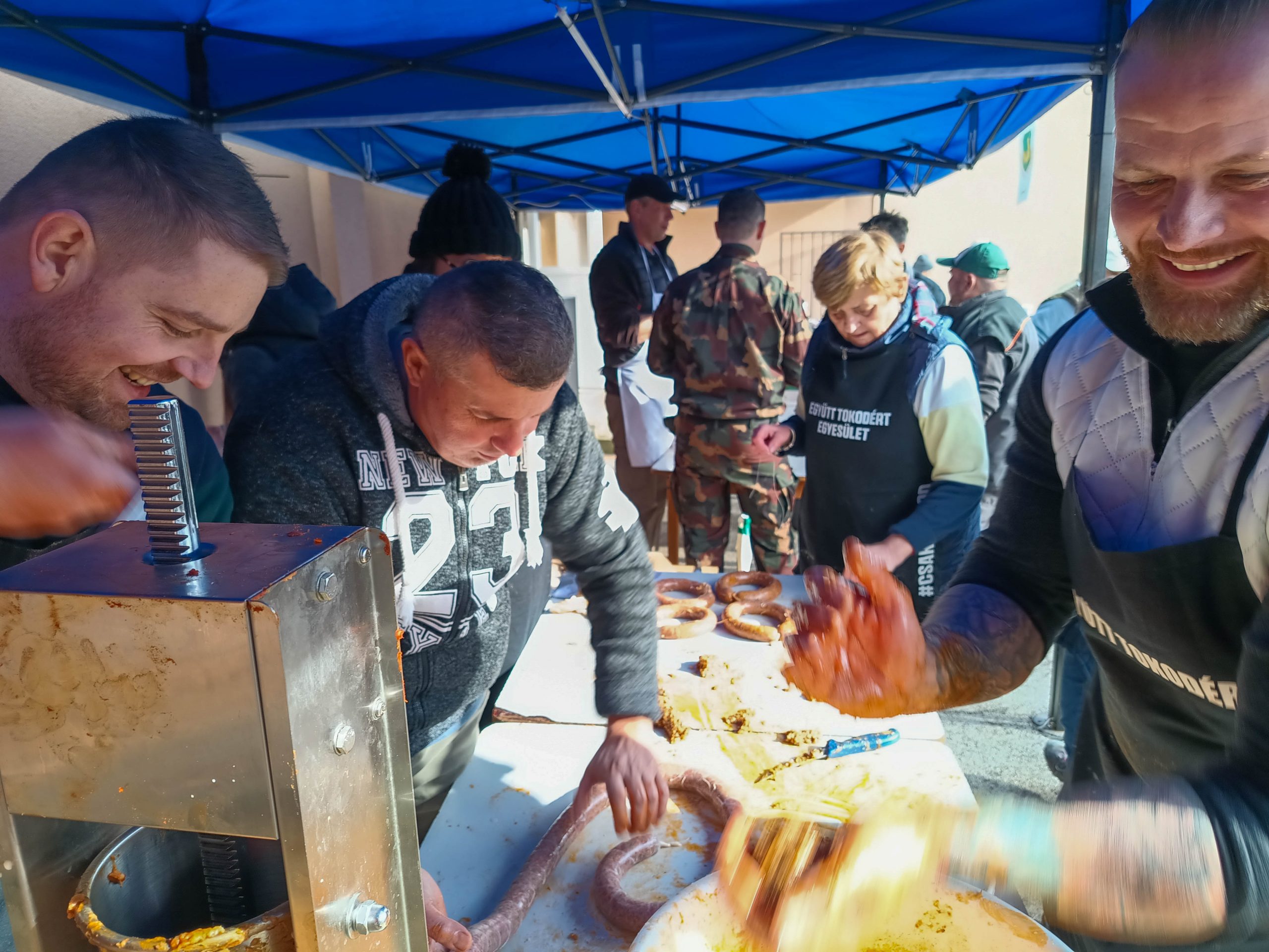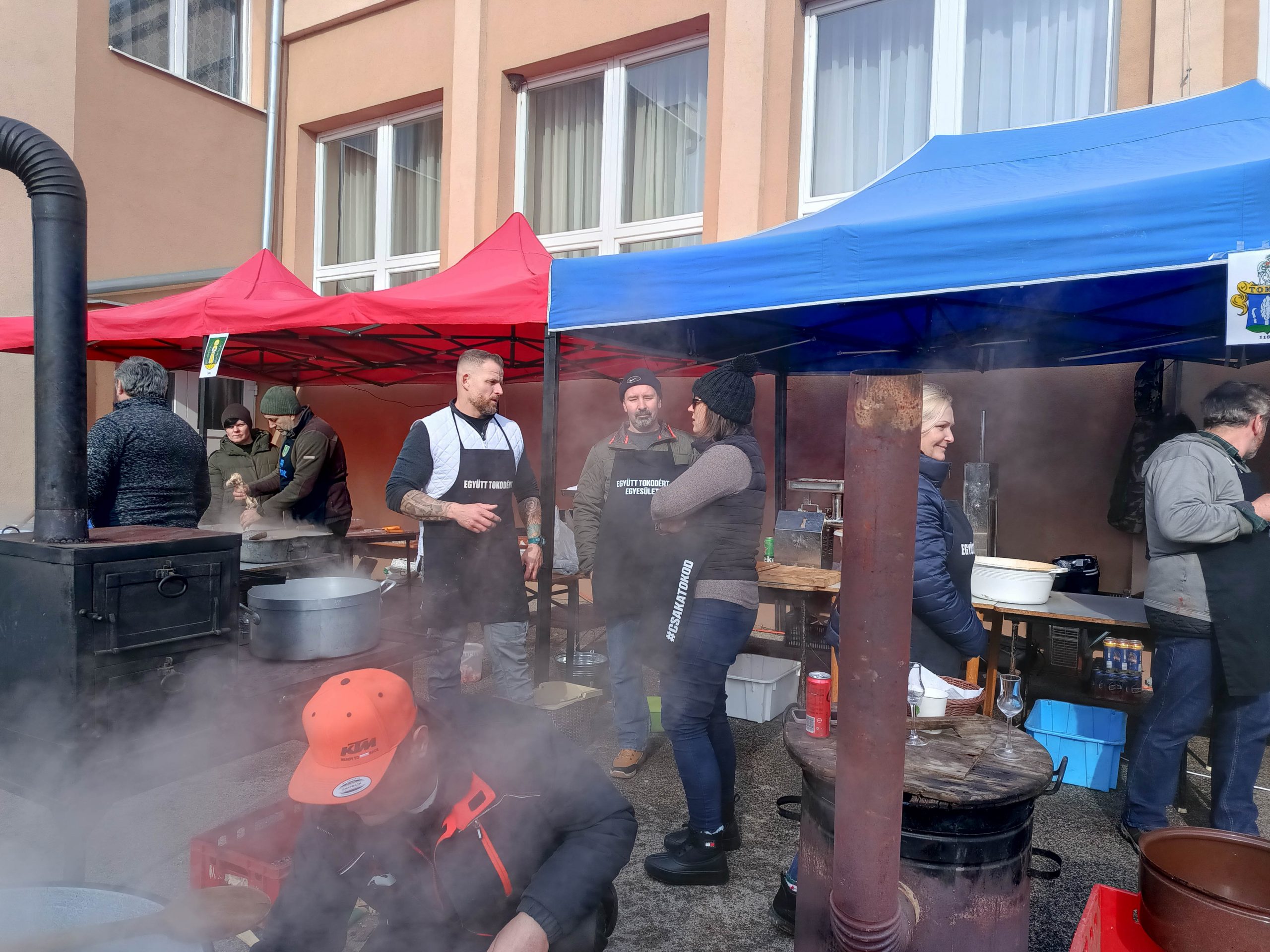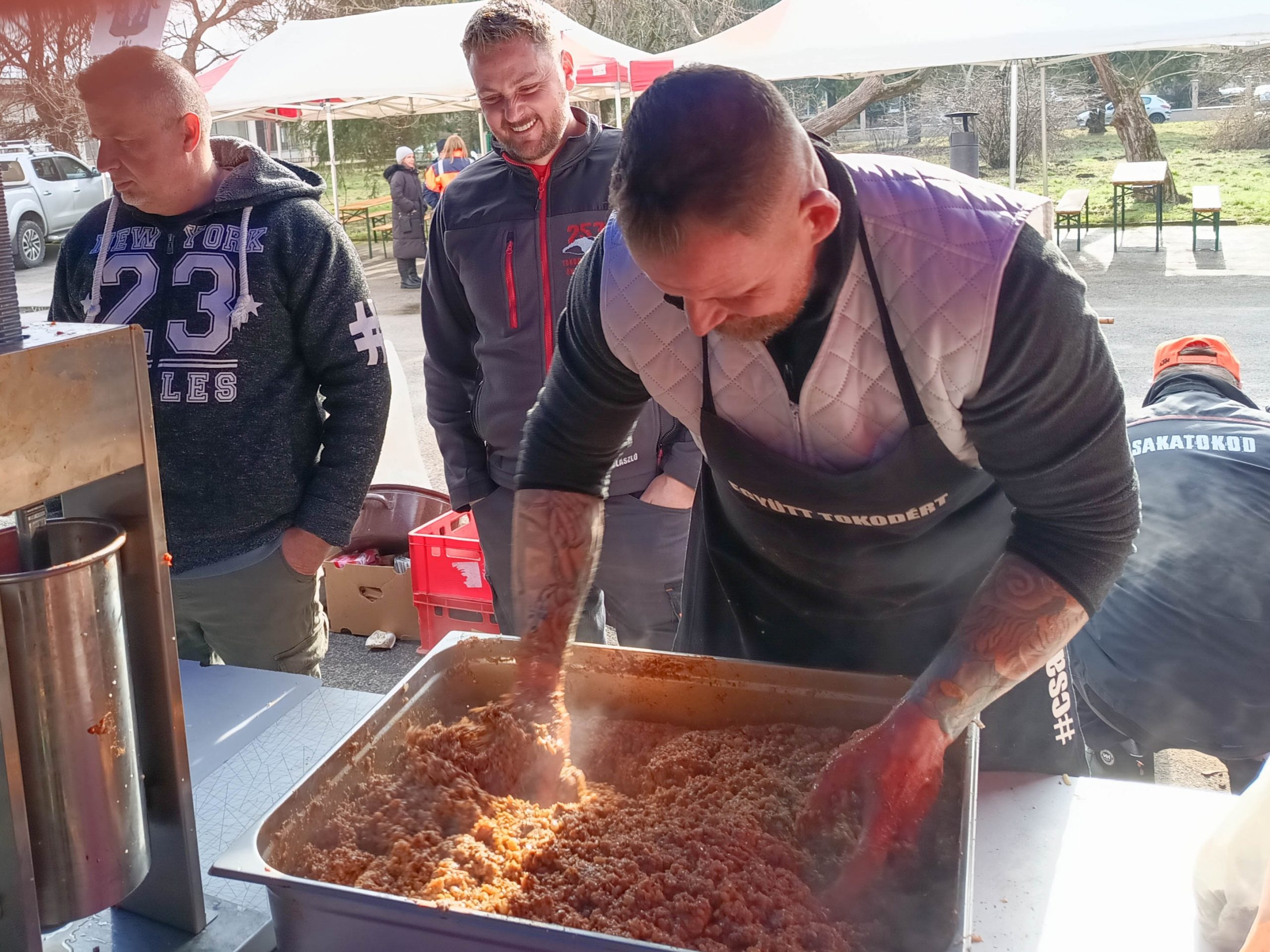 Február 7-én, szombaton három lelkes csapat jelentkezett munkára kora reggel felvidéki testvértelepülésünk, Csata szívében, hogy jó hangulat keretében feldolgozza a sertéseket. Bár nem volt fagy, az időjárás lehetett volna barátságosabb, a vendéglátóinknak, a Csata Békés vármegyei testvértelepüléséről, Csabacsűdről érkezett csapatnak és természetesen a tokodiaknak a kedvét sem vehette el semmi attól, hogy ízletes kolbászokat, hurkákat készítsenek.