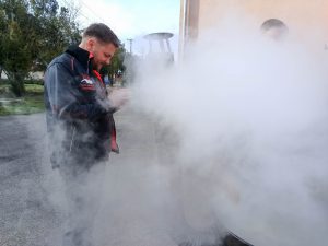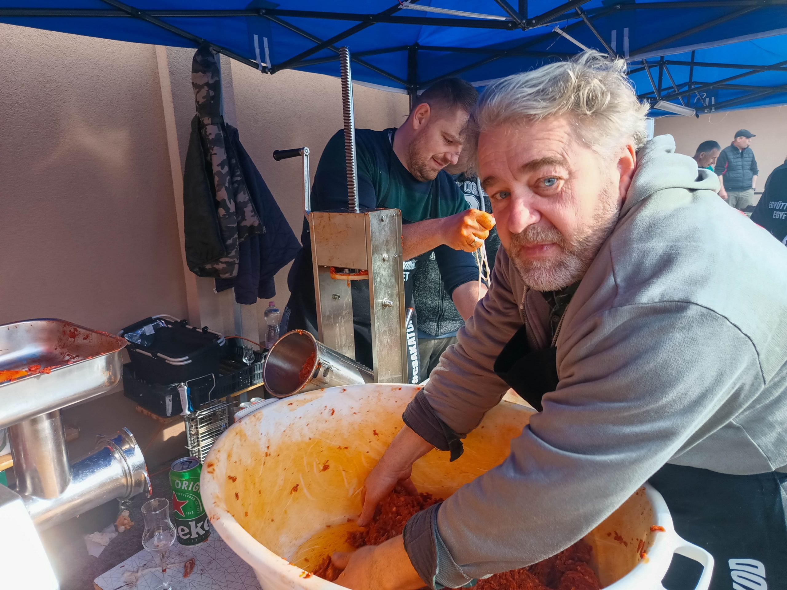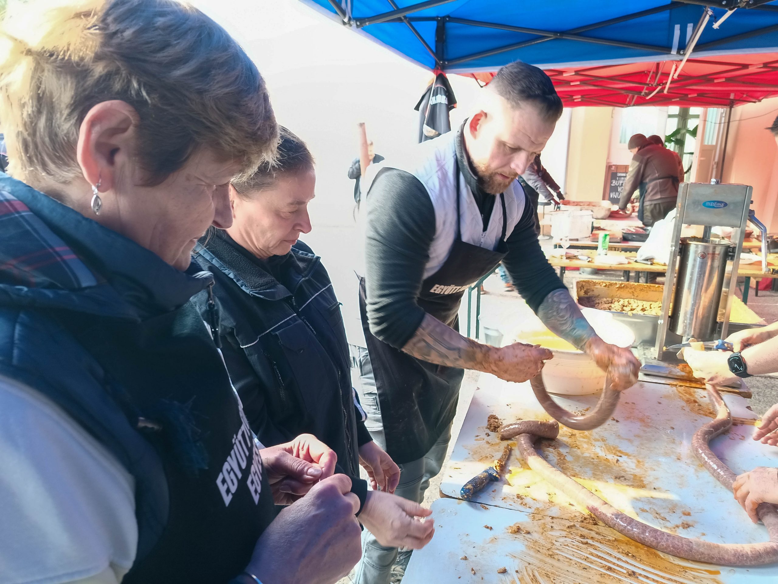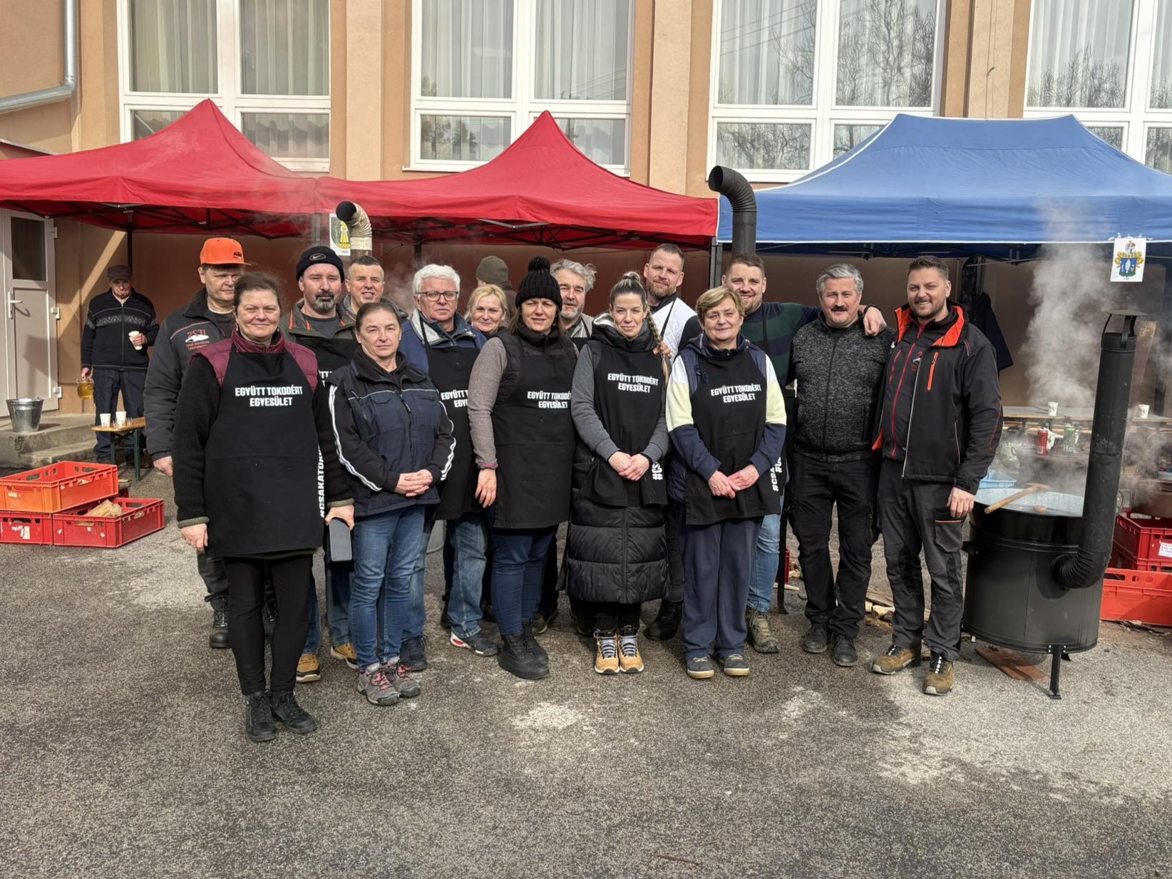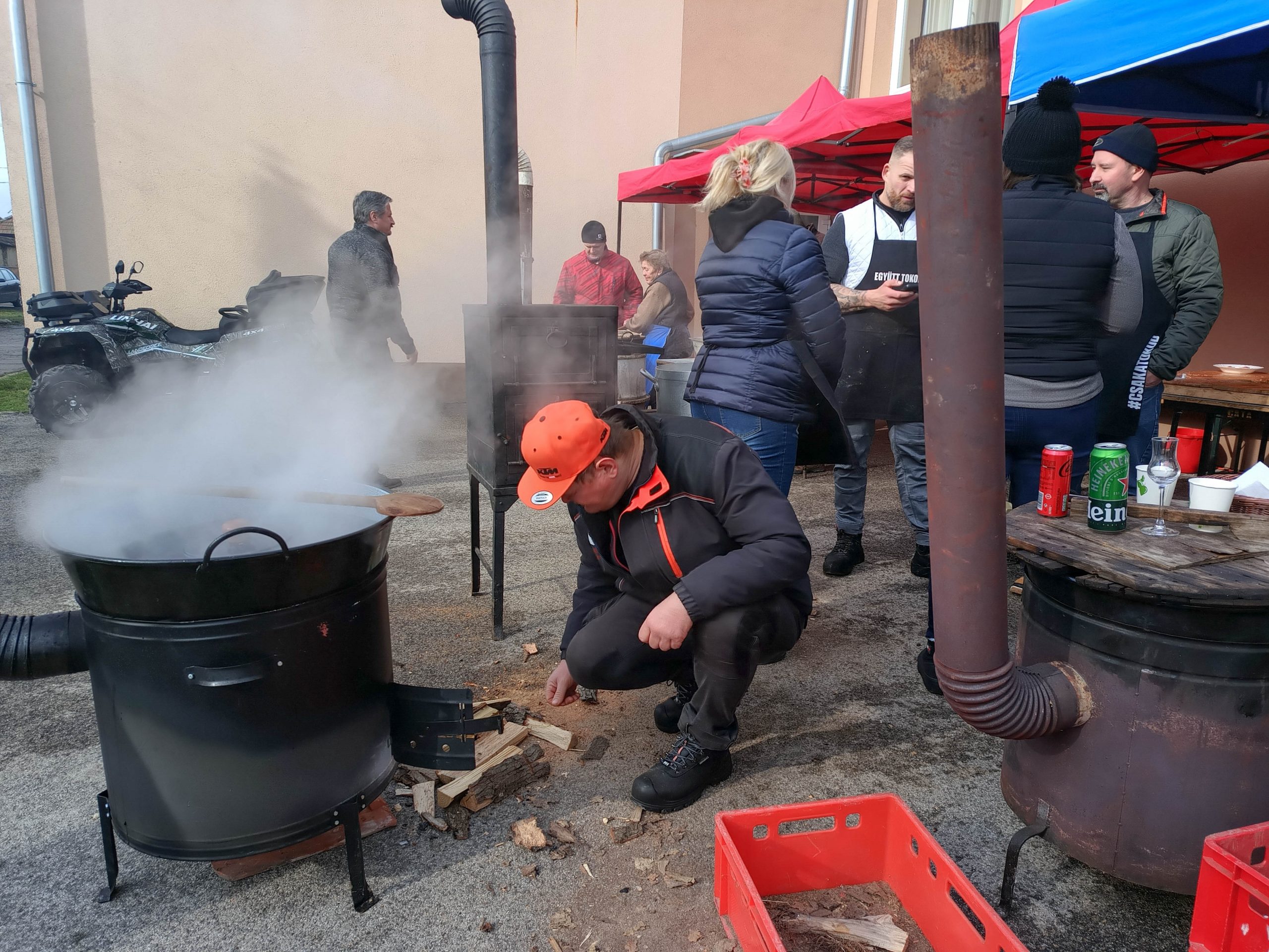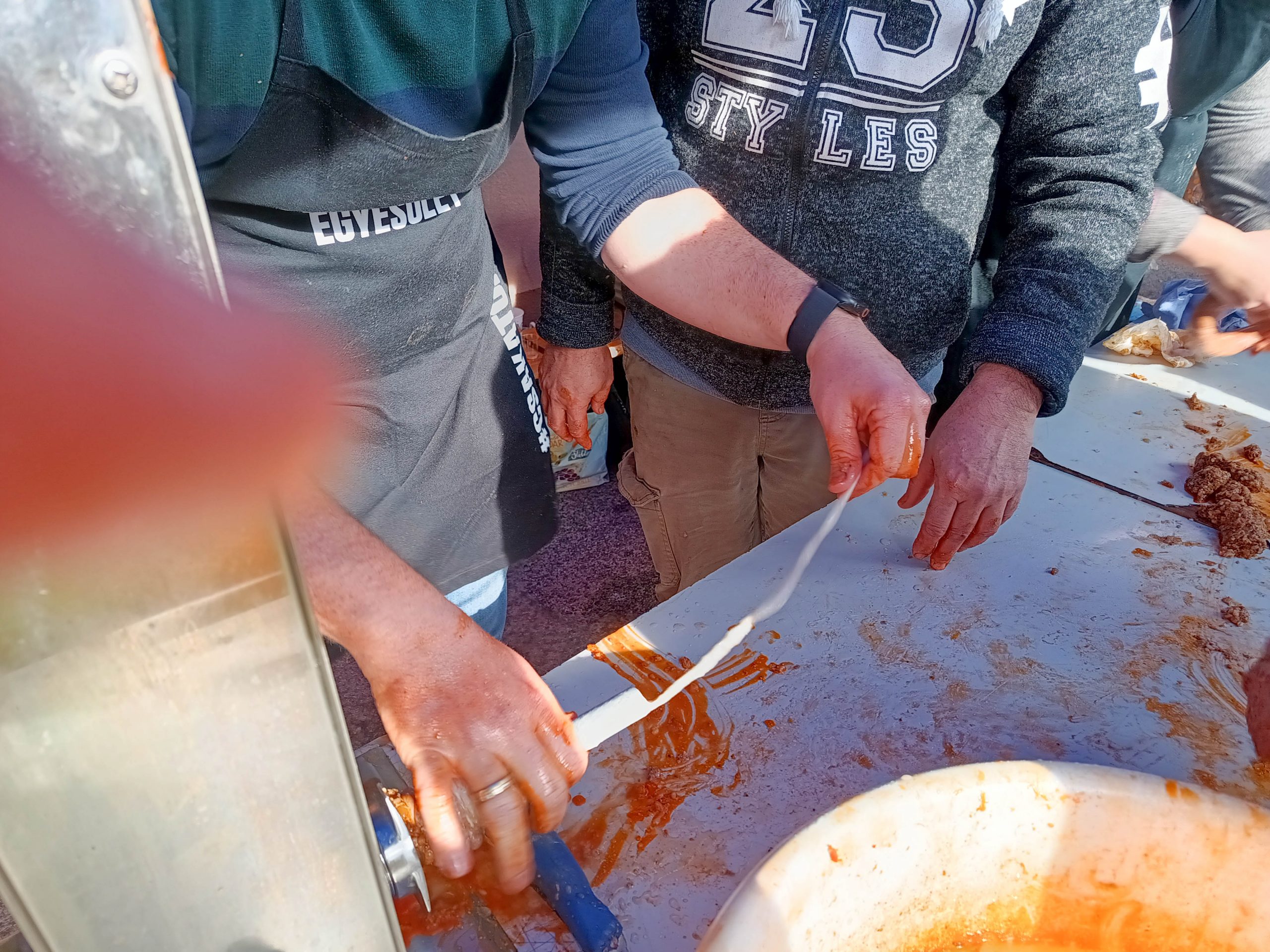 Február 7-én, szombaton három lelkes csapat jelentkezett munkára kora reggel felvidéki testvértelepülésünk, Csata szívében, hogy jó hangulat keretében feldolgozza a sertéseket. Bár nem volt fagy, az időjárás lehetett volna barátságosabb, a vendéglátóinknak, a Csata Békés vármegyei testvértelepüléséről, Csabacsűdről érkezett csapatnak és természetesen a tokodiaknak a kedvét sem vehette el semmi attól, hogy ízletes kolbászokat, hurkákat készítsenek.