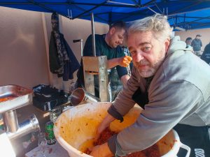 15 órára megérkeztek a lakosok, érdeklődők, akik klasszikus disznótoros csomagokat vásárolhattak. Köszönjük felvidéki testvértelepülésünknek a meghívást és vendéglátóink szívélyes fogadtatását!