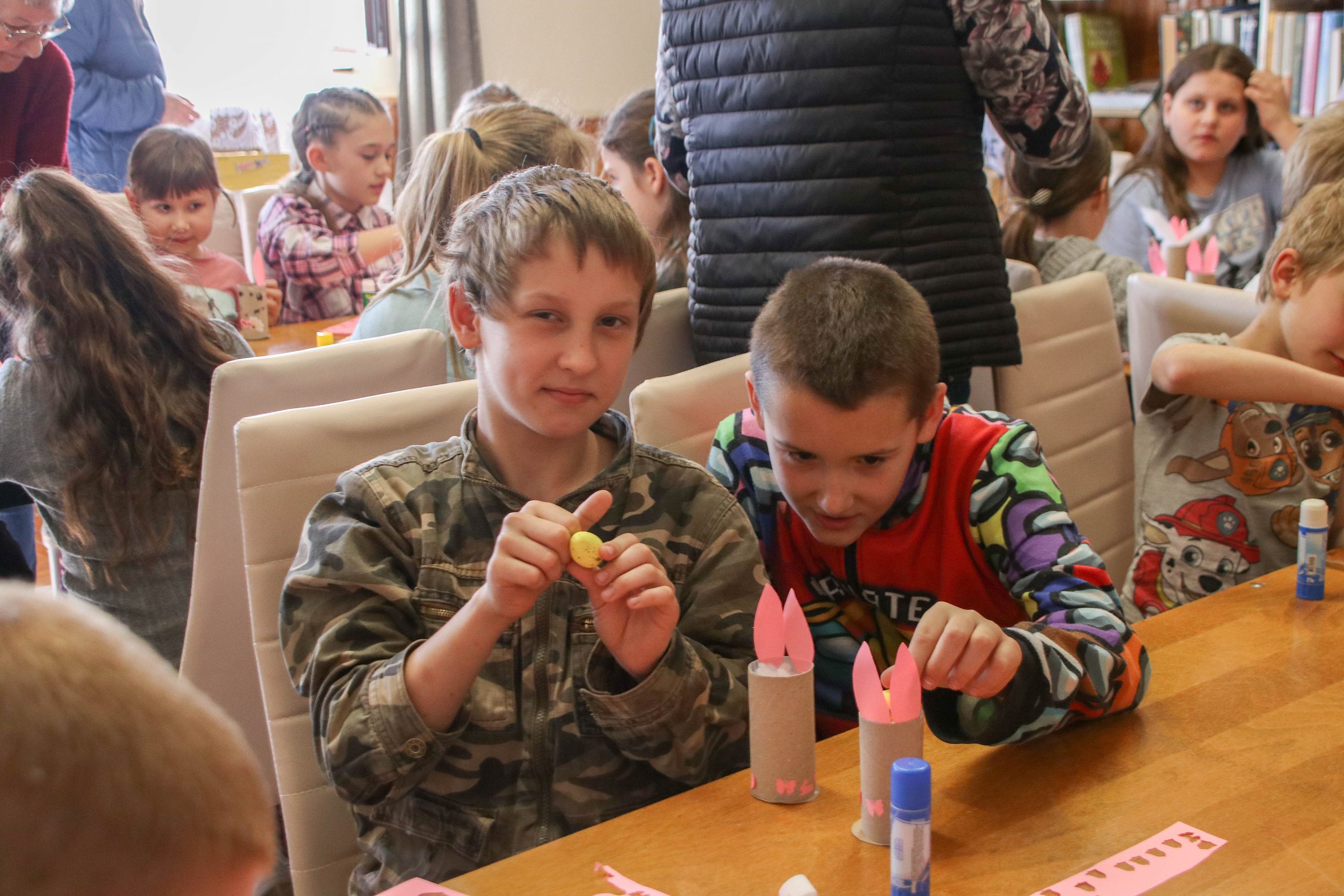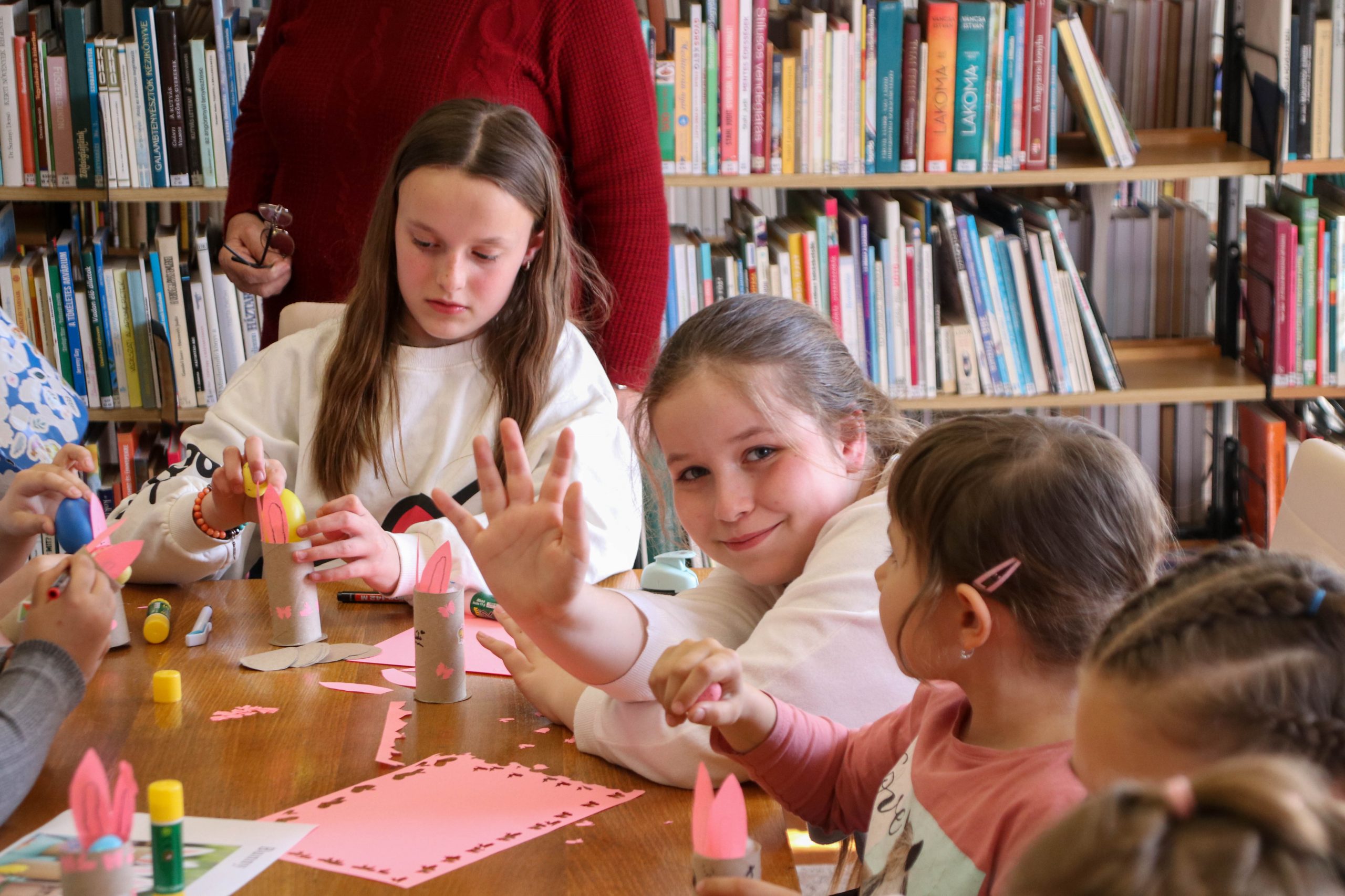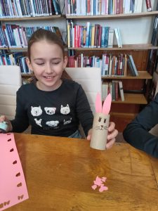 A tokodi könyvtárban húsvéti szöszmötölő foglalkozást tartottunk, a Tokodi Hegyeskő Általános Iskolába járó gyermekekkel. A fiatalok élvezték a közös alkotást, mely során papír dekorációból húsvéti nyuszik készültek.