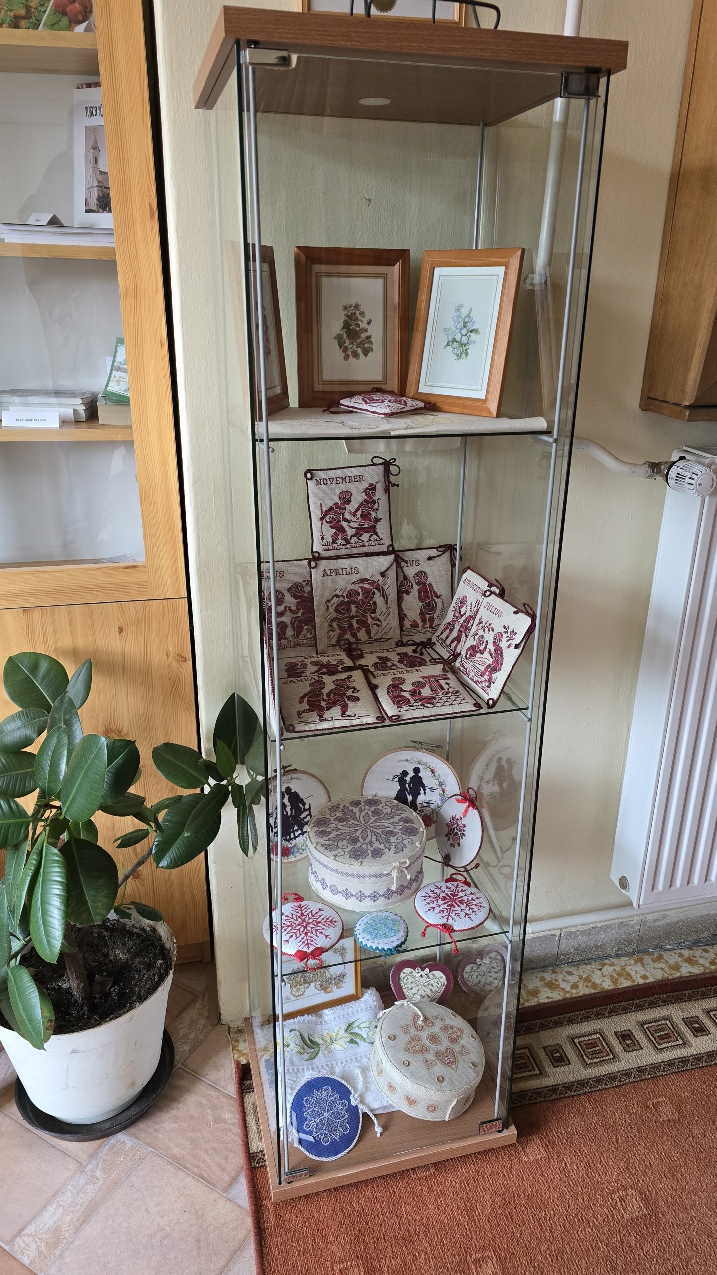 Az amigurumi kiállítás után újabb különleges alkotások tekinthetők meg a Tokod Nagyközségi Könyvtárban. Csipke Ferencné szabadidejében szívesen kézműveskedik, gyűjteménye igen változatos. A folyosón elhelyezett vitrinben kapott helyet a kézimunka gyűjteményének néhány, keresztszemes hímzéssel készített eleme, melyeket két hétig lehet megtekinteni a könyvtár nyitvatartási idejében.