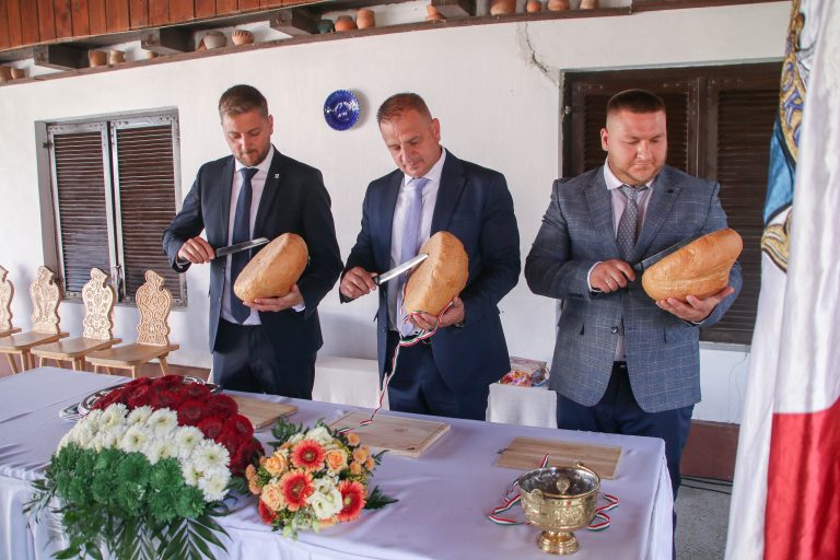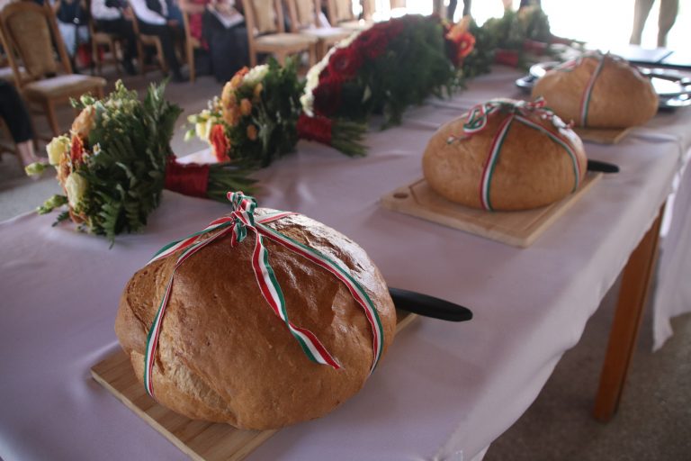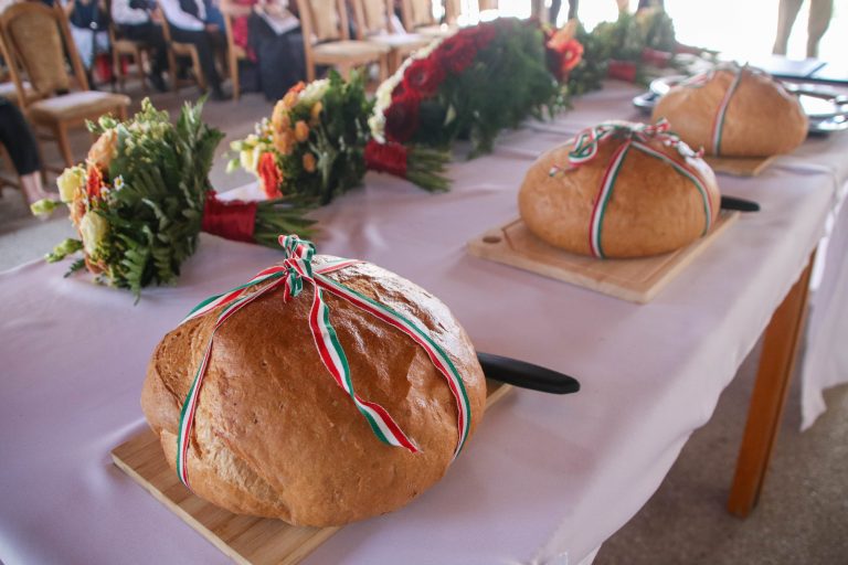 Az ünnepség végén Szőcs László megáldotta az új kenyereket, melyeket Bánhidi László, Erős Gábor és Szépvölgyi Arnold, a Tokodi Gazdakör elnöke szegett meg. Végül a jelenlévők a Kék Nefelejcs Nótakör vezetésével a Tokodi Himnuszt, majd Fehér László tárogatóművész kíséretében a Szózatot és a Székely Himnuszt énekelték el.