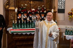 A búcsúi hagyományokhoz hűen idén is sor került a helyi és környékbeli borosgazdák újborainak megáldására. 2025-ben összesen 16 borosgazda 30 üveg új bora részesült áldásban a tokodi templomban – jelképezve a közösség összetartozását, az idei termés gyümölcsének hálaadását és a Szent Márton-napi hagyományok továbbélését.