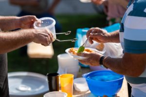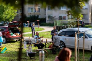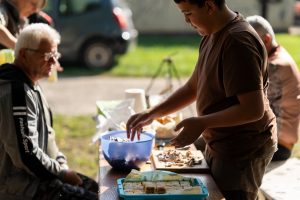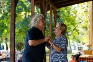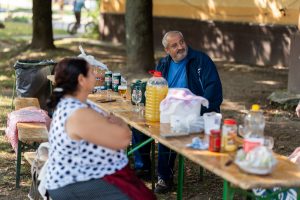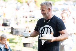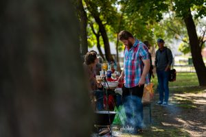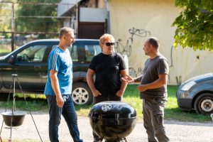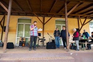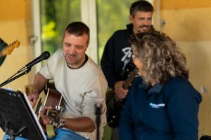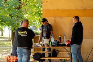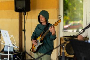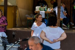 Közben a teraszon is megkezdődött a zenészek készülődése, hiszen idén is zenei csemegével készültünk a résztvevők számára. Tavaly Nagy Márton és Körösladányi Zoltán műsorát, valamint a munkásszállón lakó filippínó vendégmunkások zenéjét élvezhettük. Idén új formáció lépett fel: a Jatagán, a Gran’Gents, a Big Jump és a Bluzment zenekarok tagjaiból állt össze egy különleges csapat. Ők nemcsak zenéltek, hanem a főzőversenybe is beneveztek. Bár az ételüket nem kóstoltam, a zenei repertoárjukat imádtam – és remélem, ezzel nem voltam egyedül.