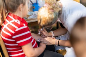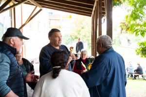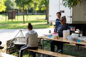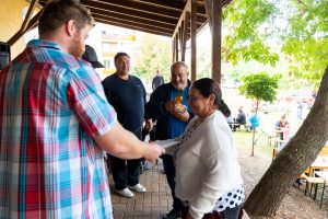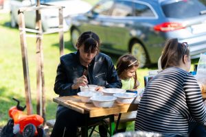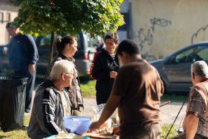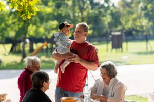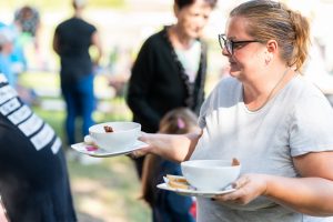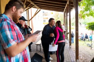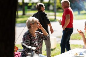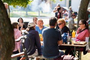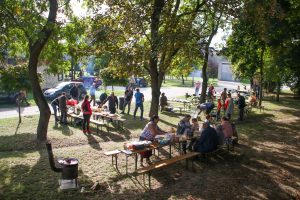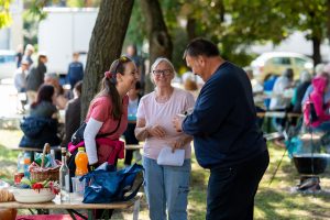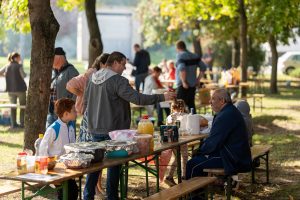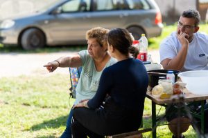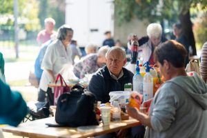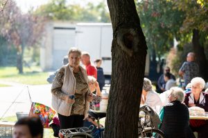 Mindenfelől beszélgetés és nevetés hallatszik. Jó látni, ahogy az emberek örülnek egymásnak, a kellemes őszi időnek, és élvezik az együtt töltött órákat.