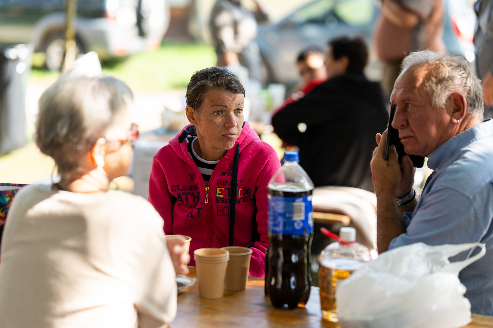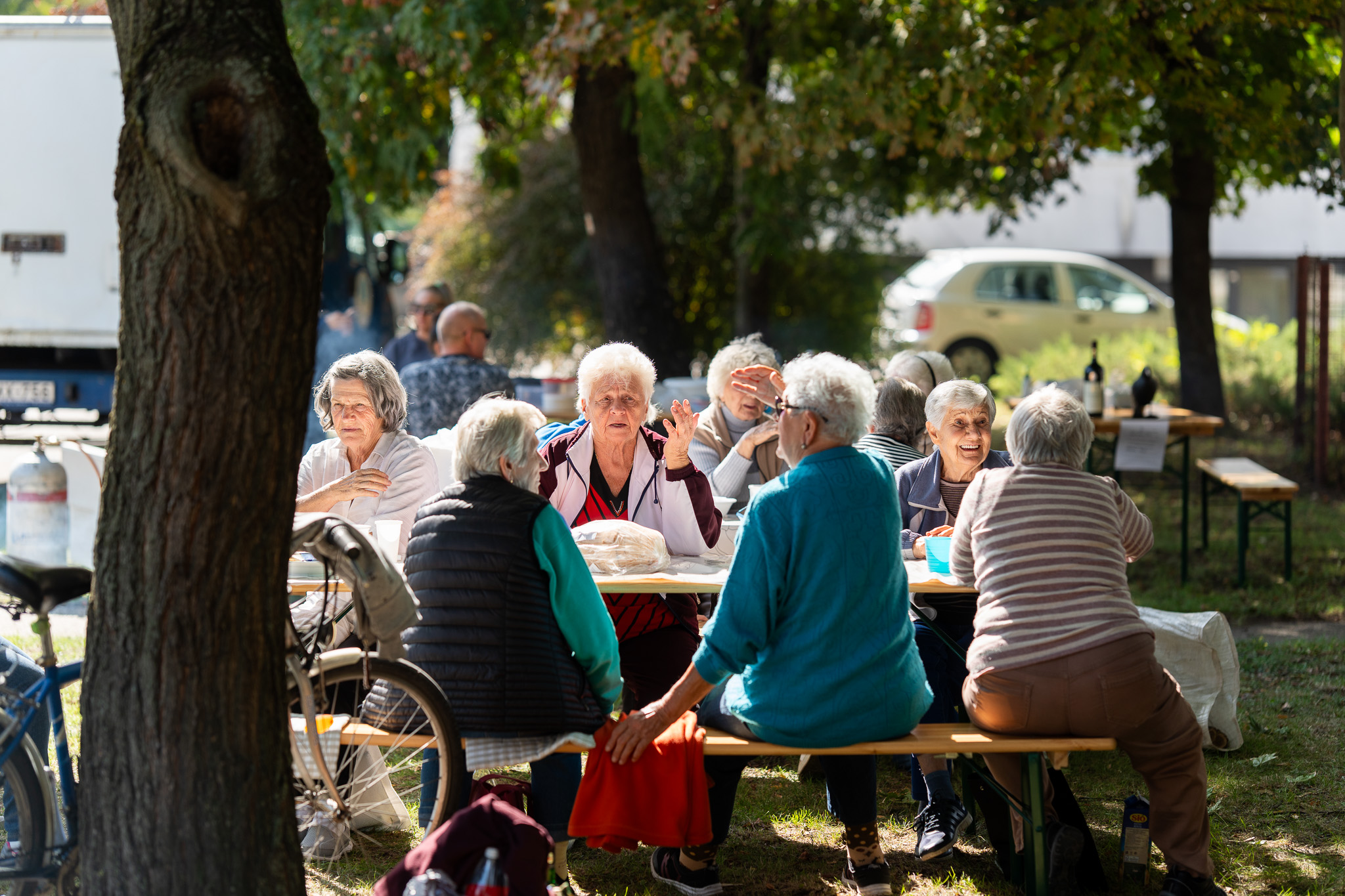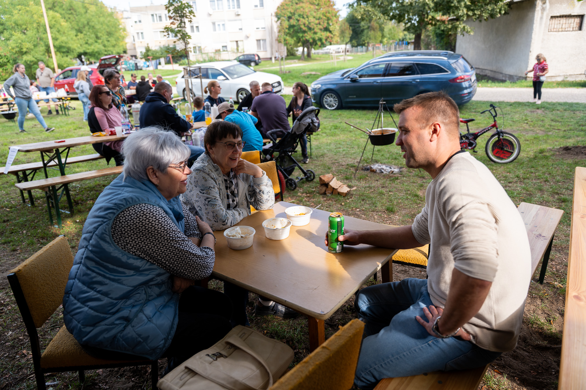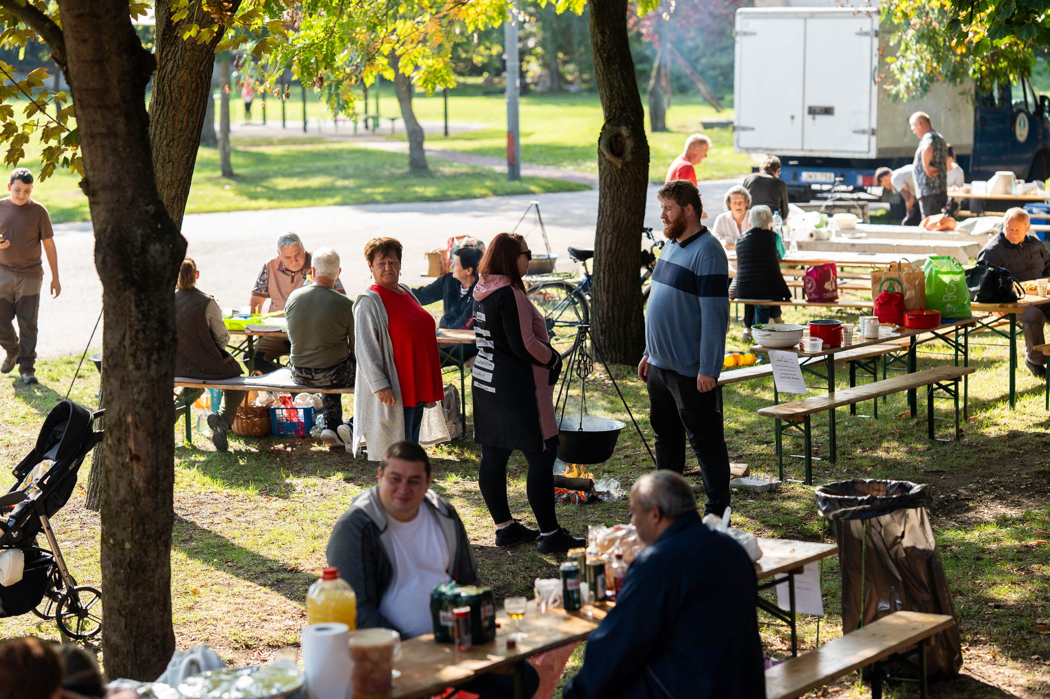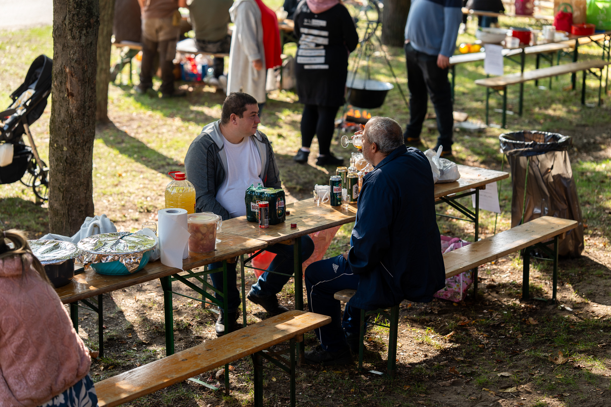 Mindenfelől beszélgetés és nevetés hallatszik. Jó látni, ahogy az emberek örülnek egymásnak, a kellemes őszi időnek, és élvezik az együtt töltött órákat.
