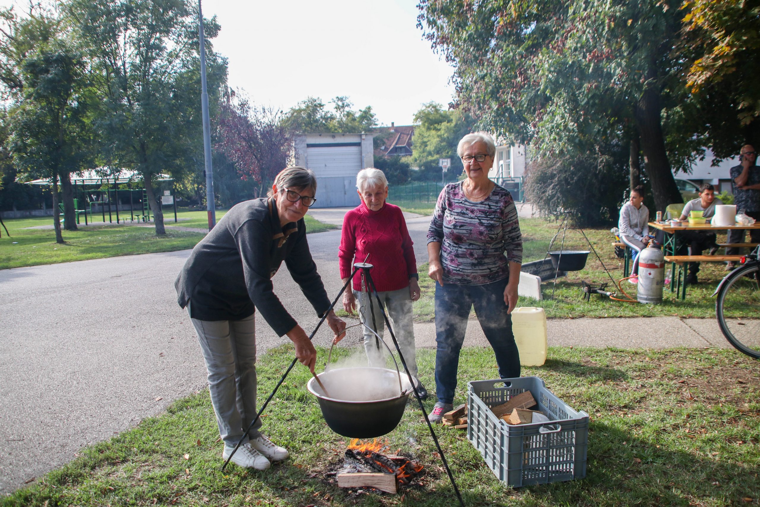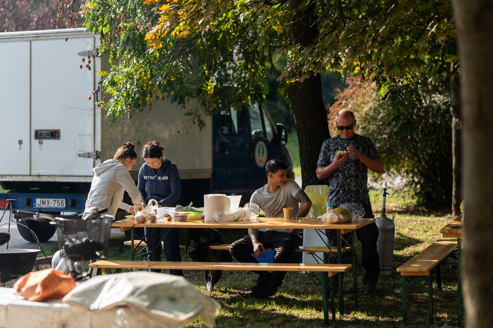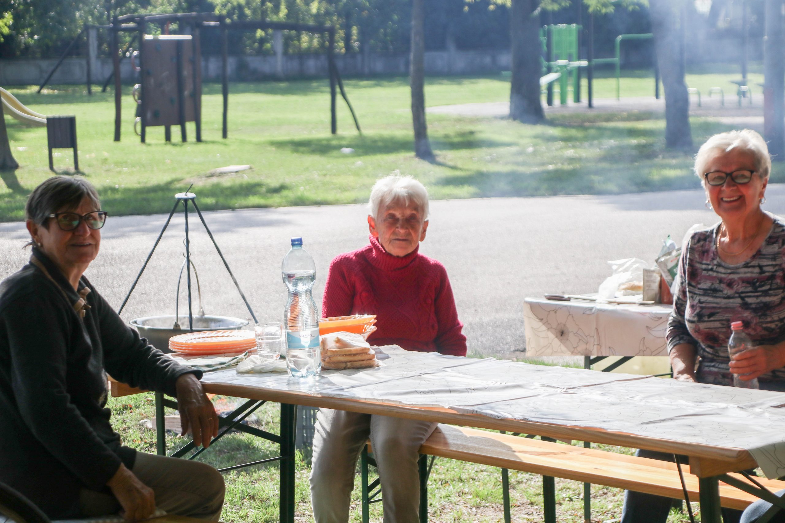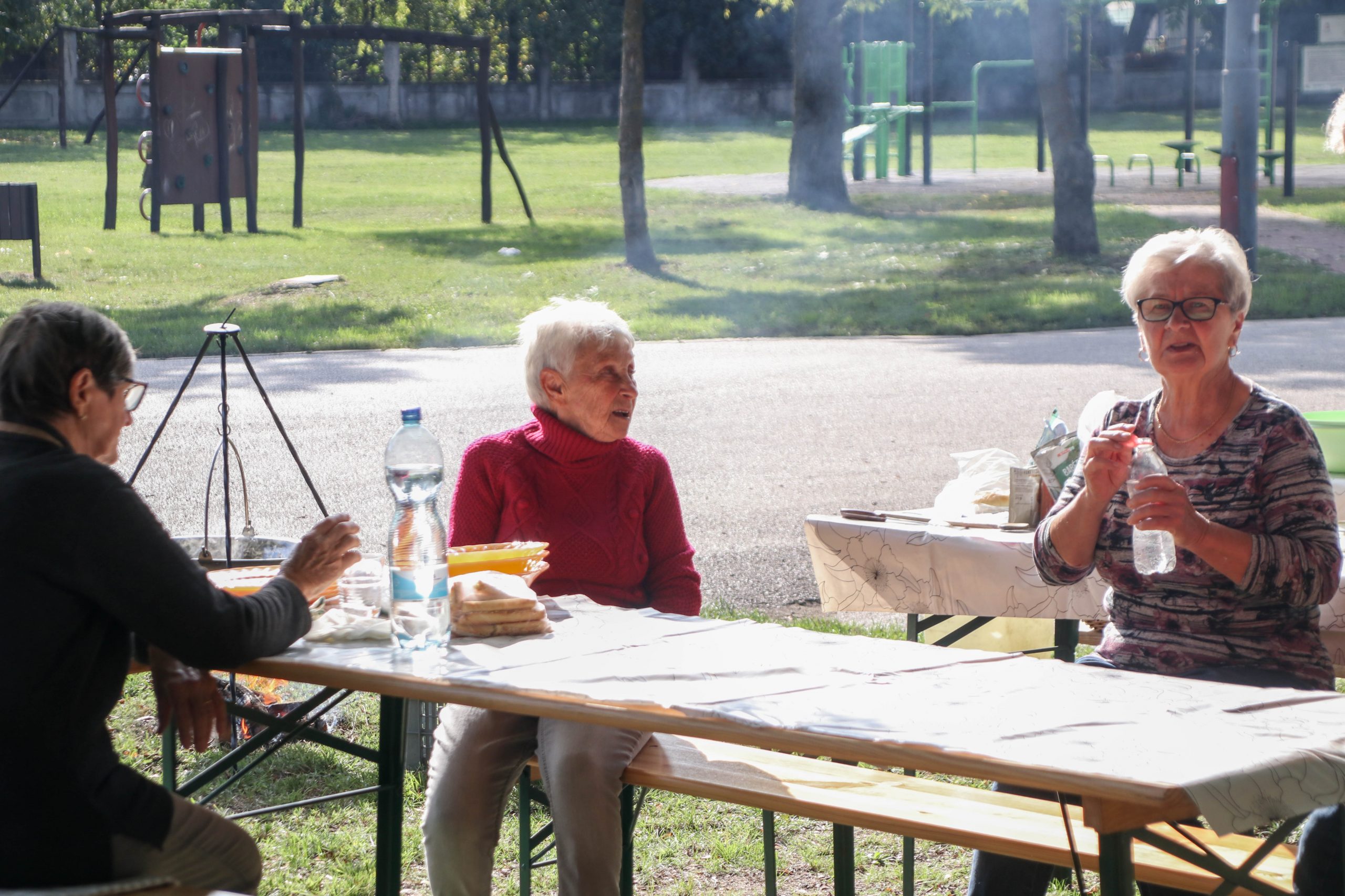 Mindenfelől beszélgetés és nevetés hallatszik. Jó látni, ahogy az emberek örülnek egymásnak, a kellemes őszi időnek, és élvezik az együtt töltött órákat.