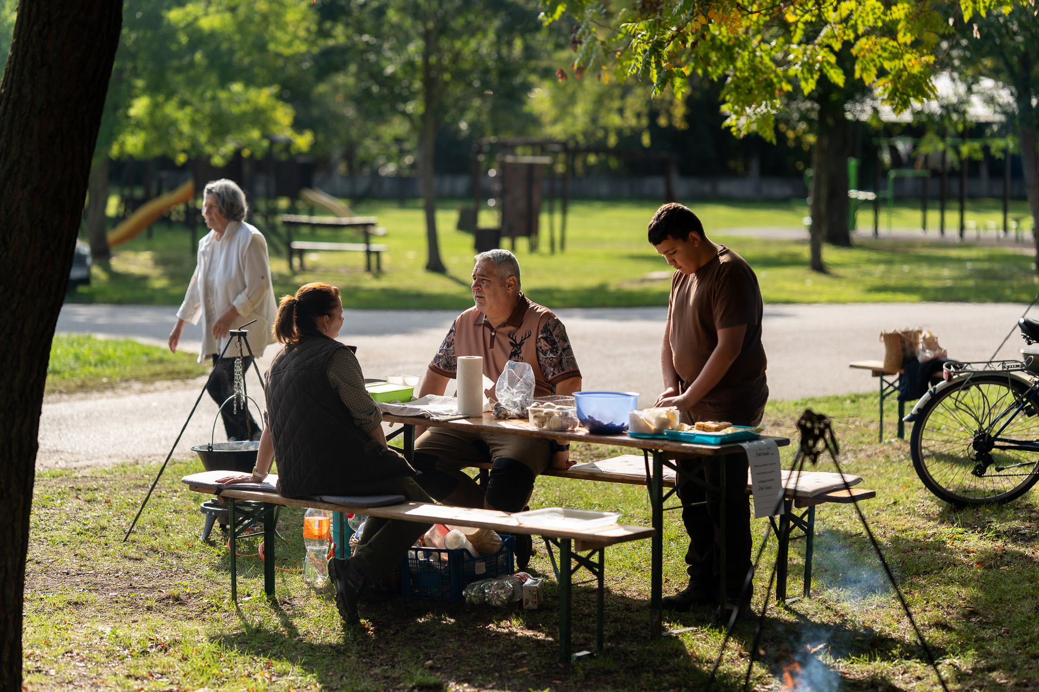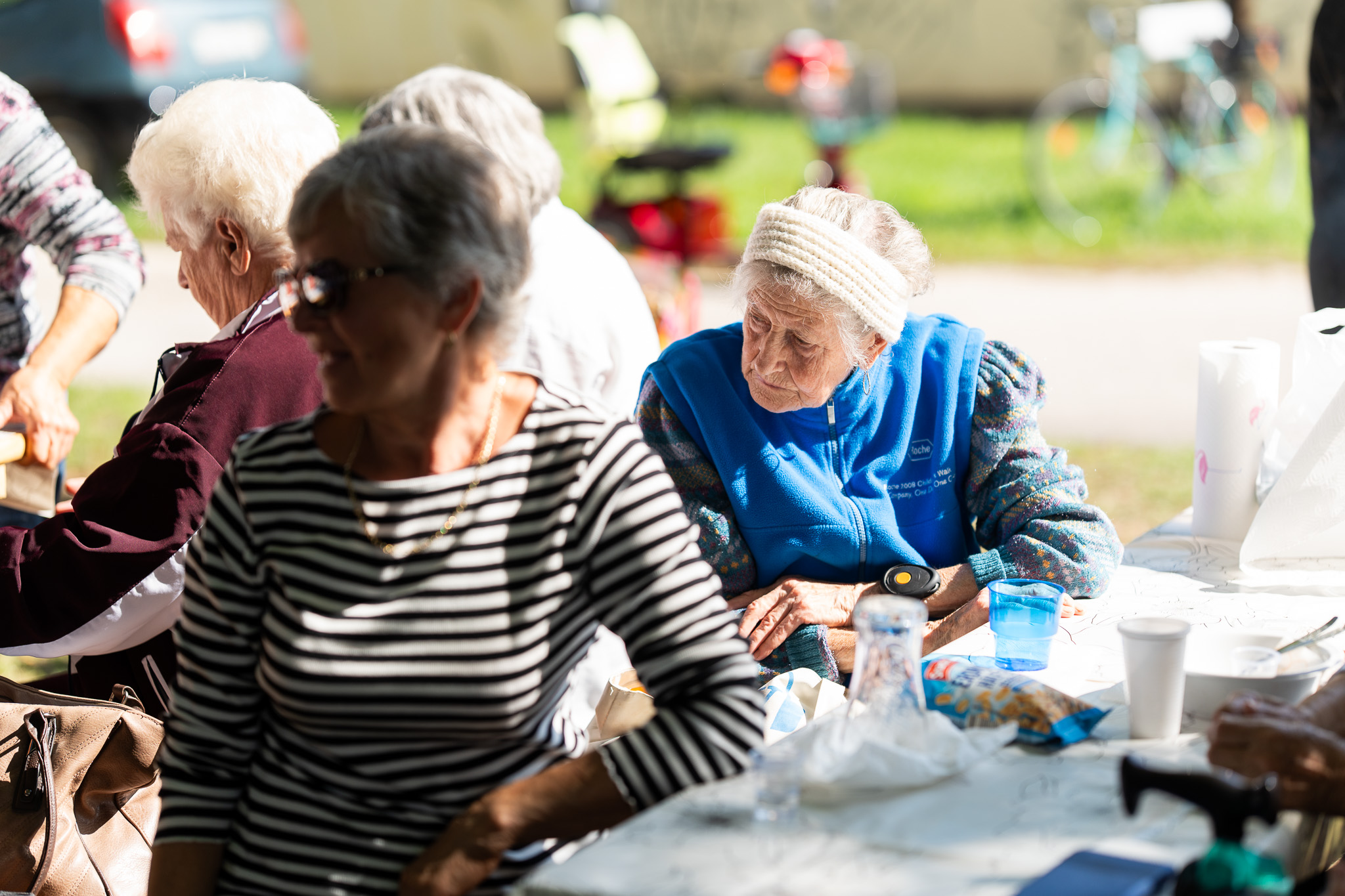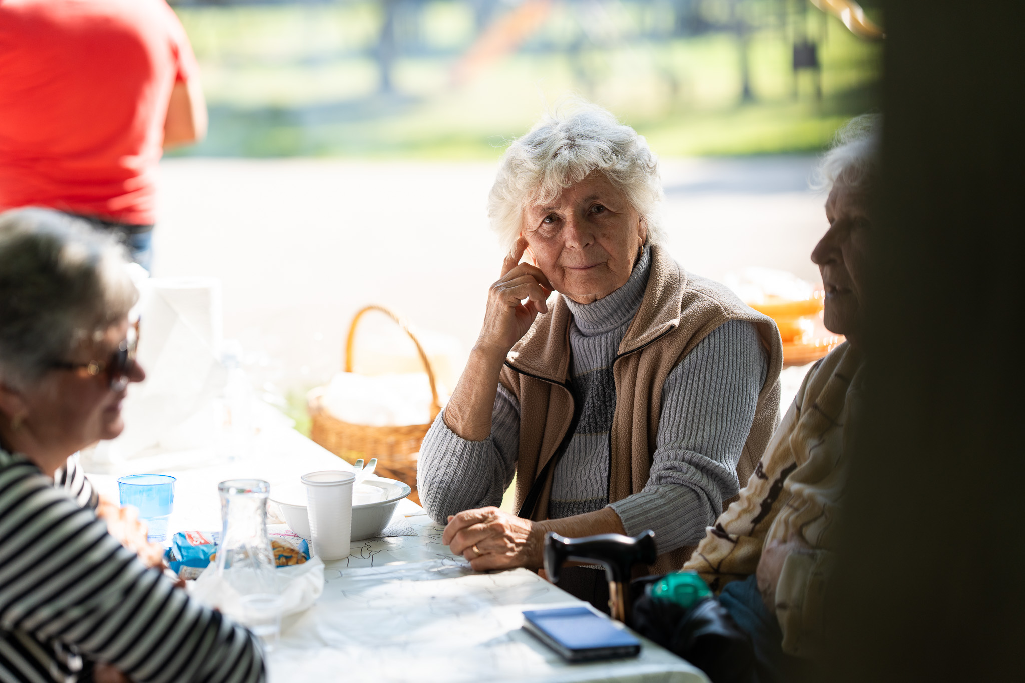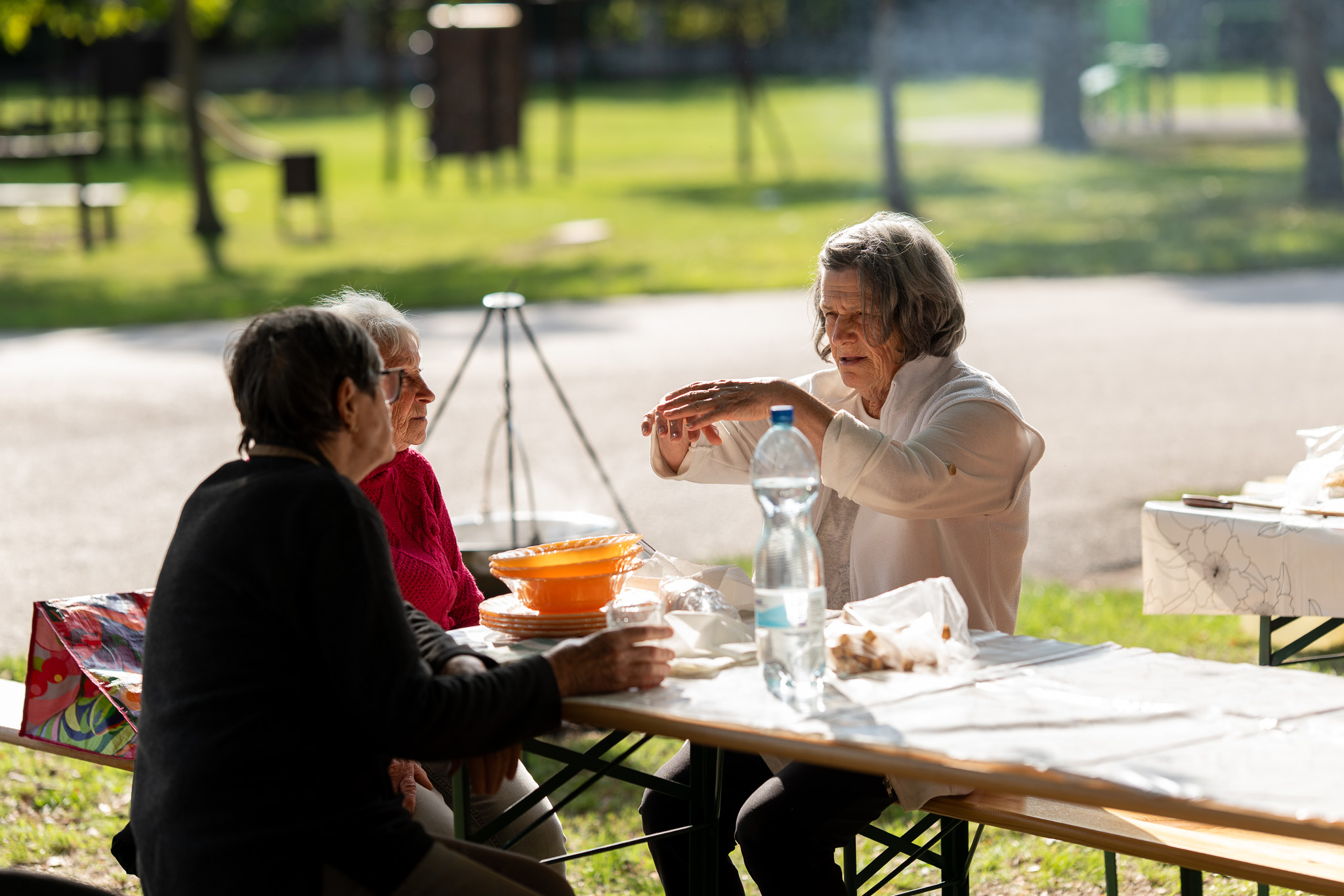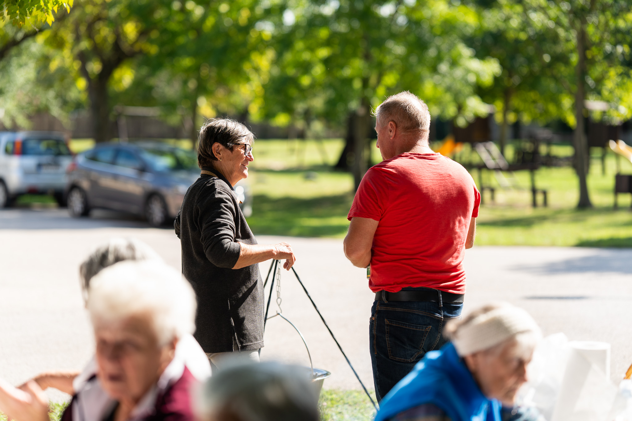 Mindenfelől beszélgetés és nevetés hallatszik. Jó látni, ahogy az emberek örülnek egymásnak, a kellemes őszi időnek, és élvezik az együtt töltött órákat.
