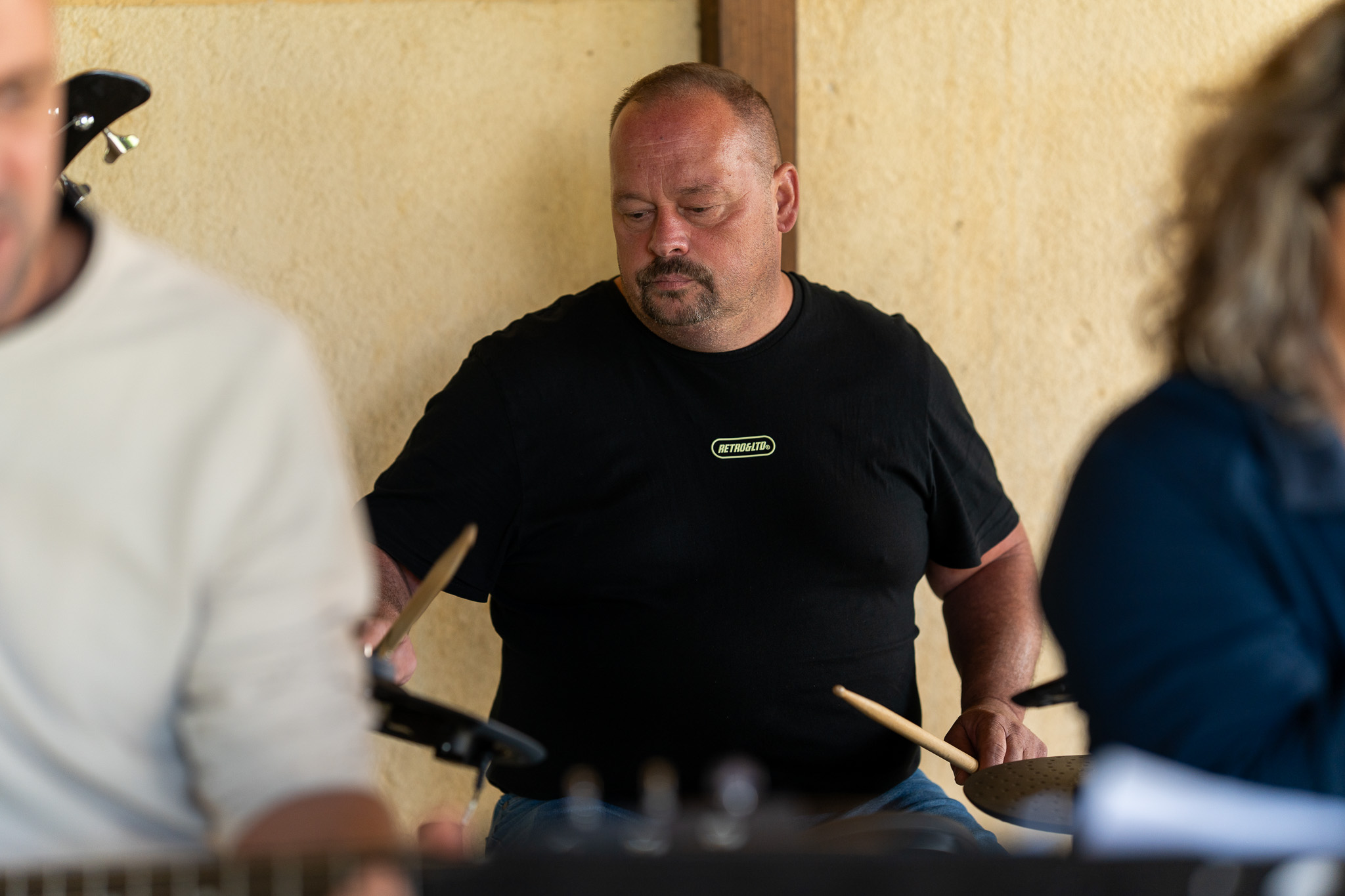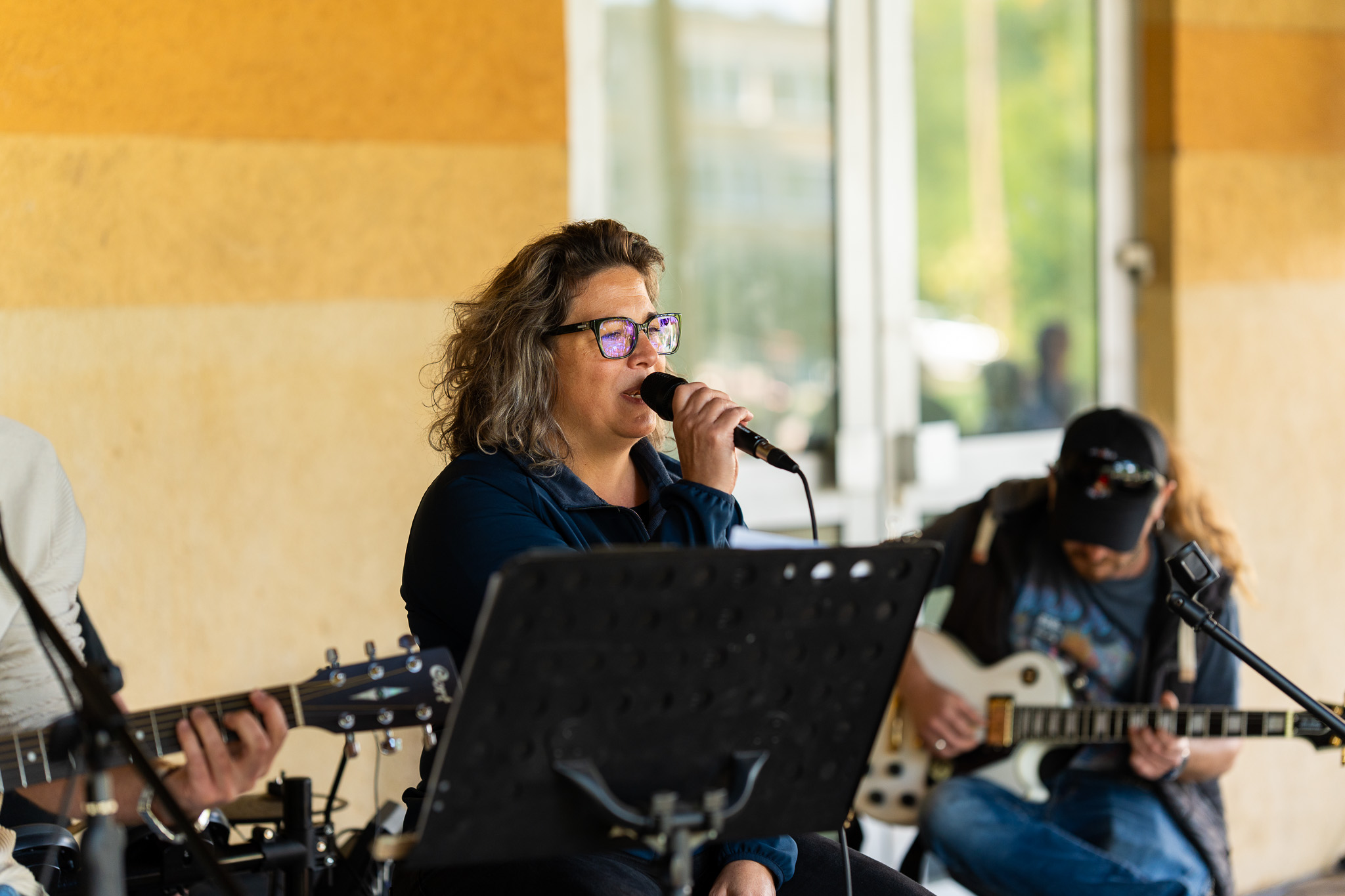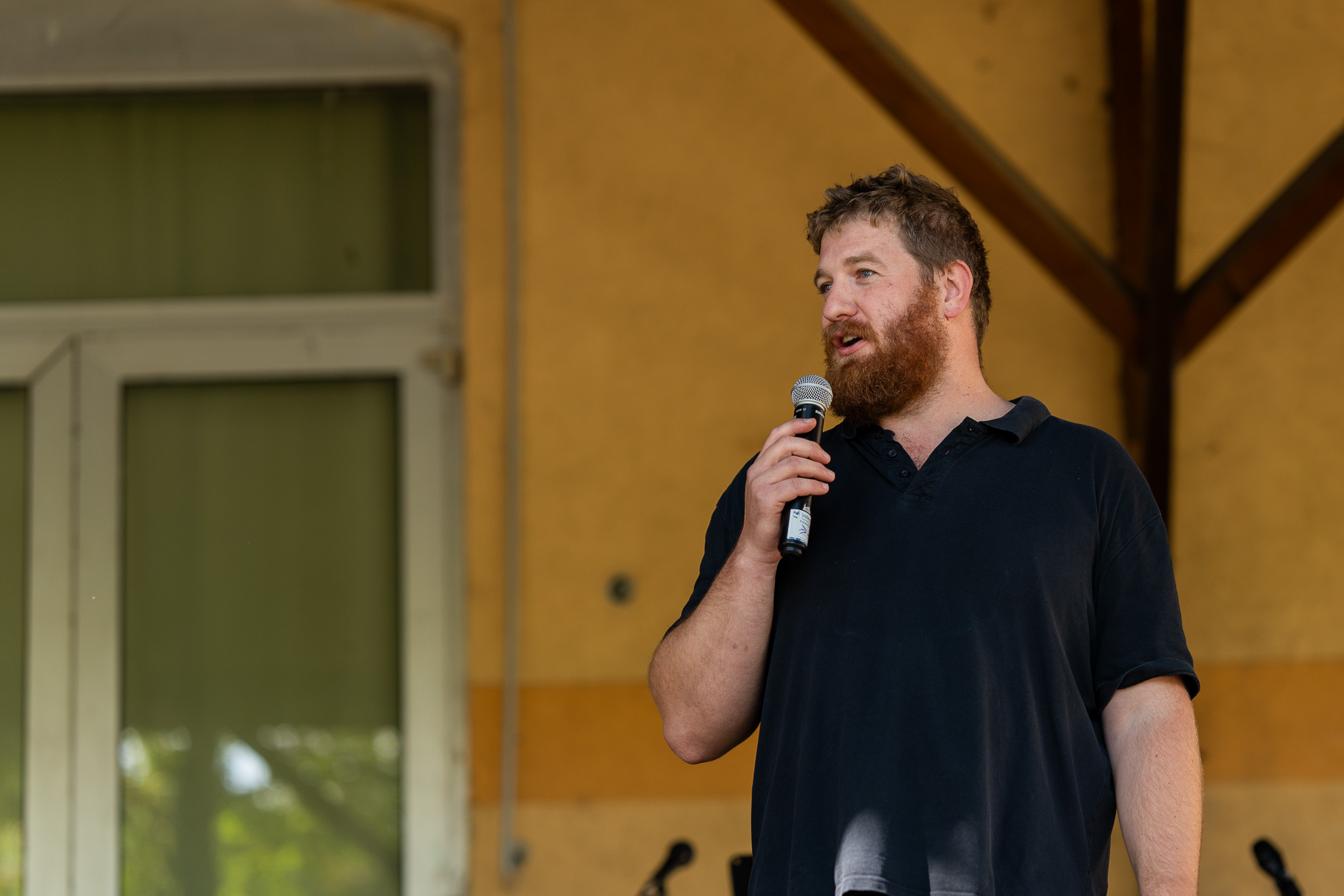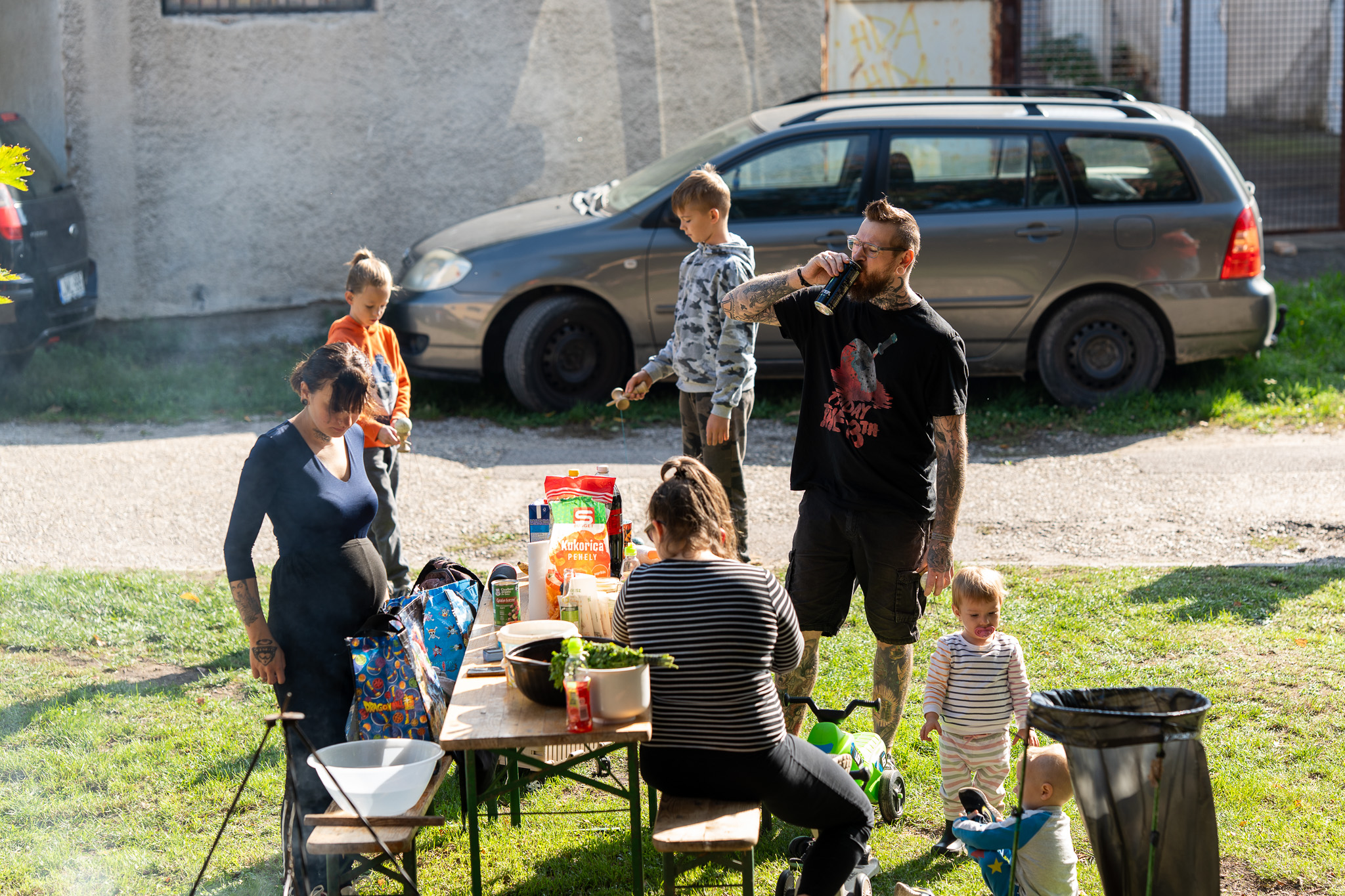 Közben a teraszon is megkezdődött a zenészek készülődése, hiszen idén is zenei csemegével készültünk a résztvevők számára. Tavaly Nagy Márton és Körösladányi Zoltán műsorát, valamint a munkásszállón lakó filippínó vendégmunkások zenéjét élvezhettük. Idén új formáció lépett fel: a Jatagán, a Gran’Gents, a Big Jump és a Bluzment zenekarok tagjaiból állt össze egy különleges csapat. Ők nemcsak zenéltek, hanem a főzőversenybe is beneveztek. Bár az ételüket nem kóstoltam, a zenei repertoárjukat imádtam – és remélem, ezzel nem voltam egyedül.