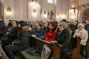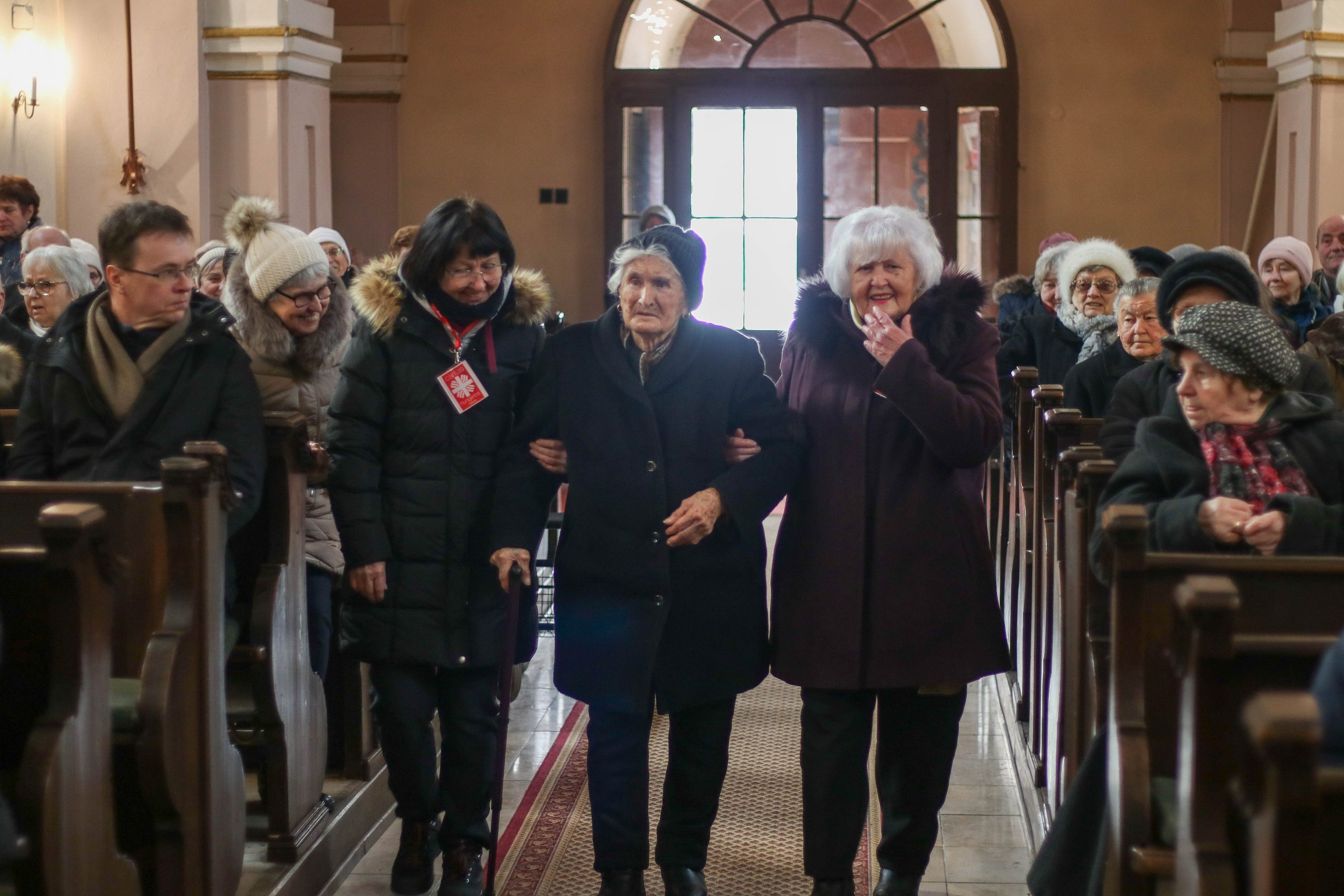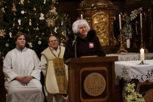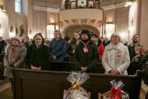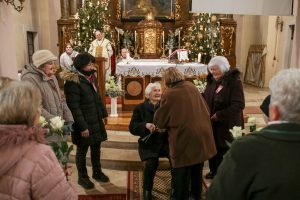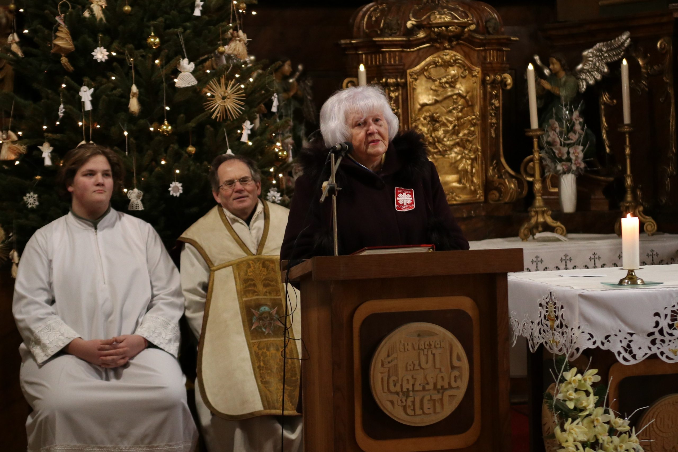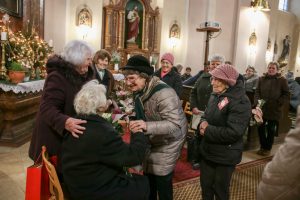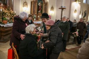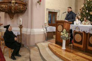A szentmise végén következtek a köszöntő beszédek. Szóda Józsefné, a Szent Márton Karitász Csoport korábbi vezetője többek között köszöntötte Erős Gábor országgyűlési képviselőt, Ferenczy Rudolfnét, az Esztergom-Bajóti Karitász Régió vezetőjét és Huszárné Kárpáti Adriennt, az Esztergom-Budapesti Főegyházmegye Szent Erzsébet Karitász Központ képviselőjét. Ezután Kati nénihez fordult, aki egy egész életen át szeretettel szolgált a településen, követte Jézus tanítását, a helyi Karitász szervezet oszlopos tagjaként mindig is segítette az elesetteket, a magányos és rászoruló embereket, példásan járt mindannyiunk előtt.