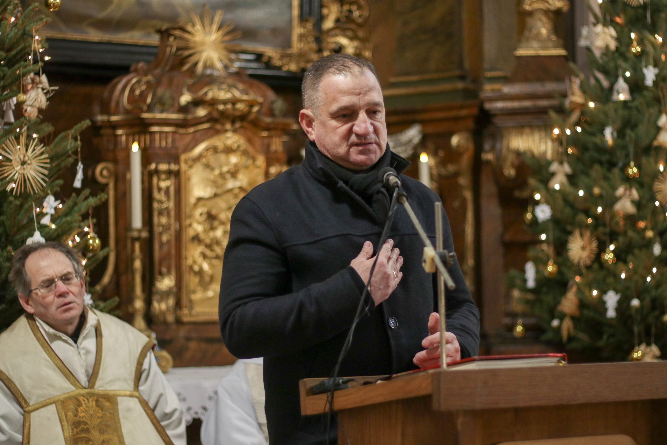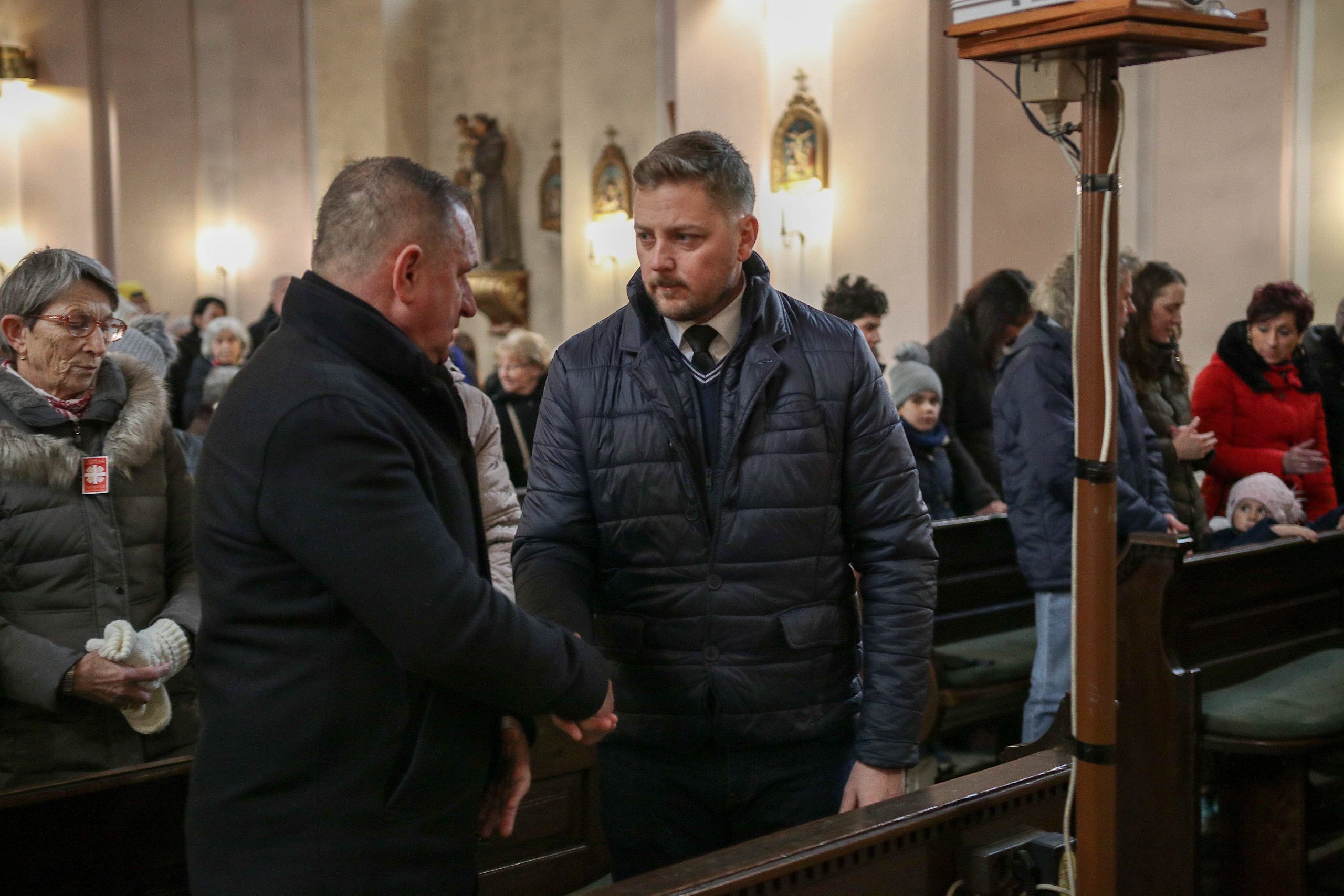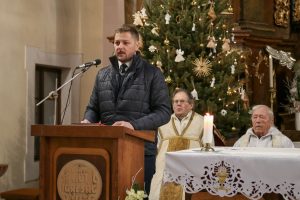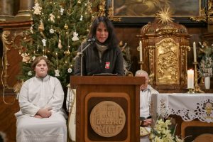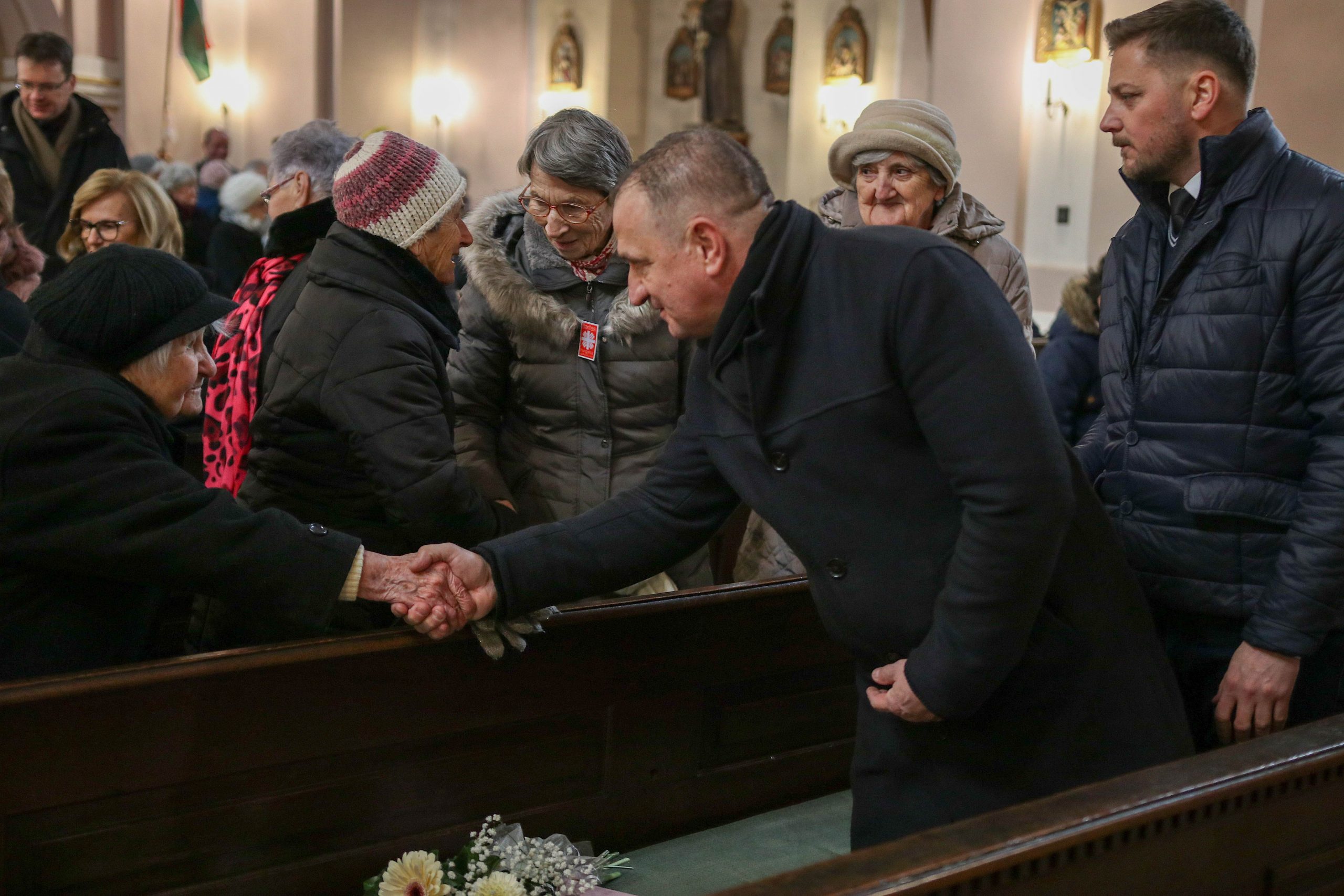A szentmise végén következtek a köszöntő beszédek. Szóda Józsefné, a Szent Márton Karitász Csoport korábbi vezetője többek között köszöntötte Erős Gábor országgyűlési képviselőt, Ferenczy Rudolfnét, az Esztergom-Bajóti Karitász Régió vezetőjét és Huszárné Kárpáti Adriennt, az Esztergom-Budapesti Főegyházmegye Szent Erzsébet Karitász Központ képviselőjét. Ezután Kati nénihez fordult, aki egy egész életen át szeretettel szolgált a településen, követte Jézus tanítását, a helyi Karitász szervezet oszlopos tagjaként mindig is segítette az elesetteket, a magányos és rászoruló embereket, példásan járt mindannyiunk előtt.