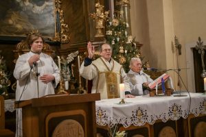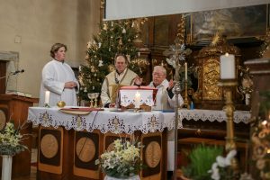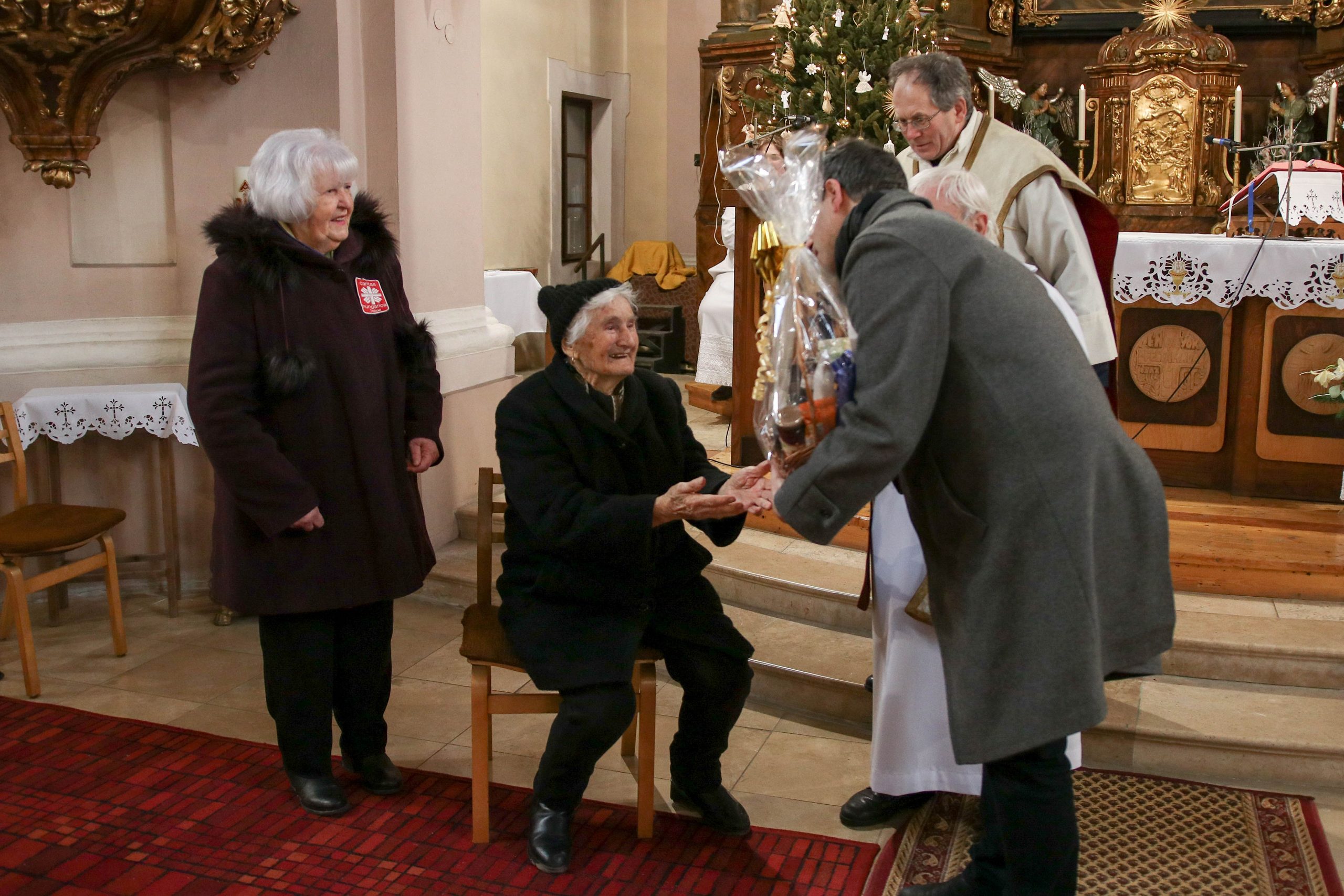 Nagyközségünk életében is különlegesnek számító ünnepen Szőcs László atya, településünk jelenlegi, illetve Kardos Mihály atya, Tokod korábbi plébánosa közösen celebrált hálaadó szentmisét. Szőcs László az evangéliumot követő beszédében kiemelte: Kati néniben az ószövetségi hit, a hosszú élet és a keresztény szeretet elevensége összekapcsolódik. Hálásak lehetünk, hogy itt helyben is vannak olyan példaképek, mint Vigh Károlyné, aki hűséges Jézushoz, akinek mindenkihez van egy kedves szava és ott segít, ahol tud.