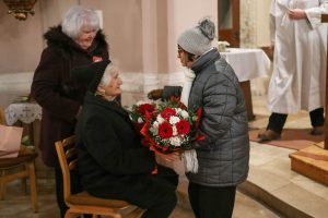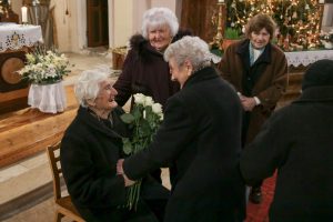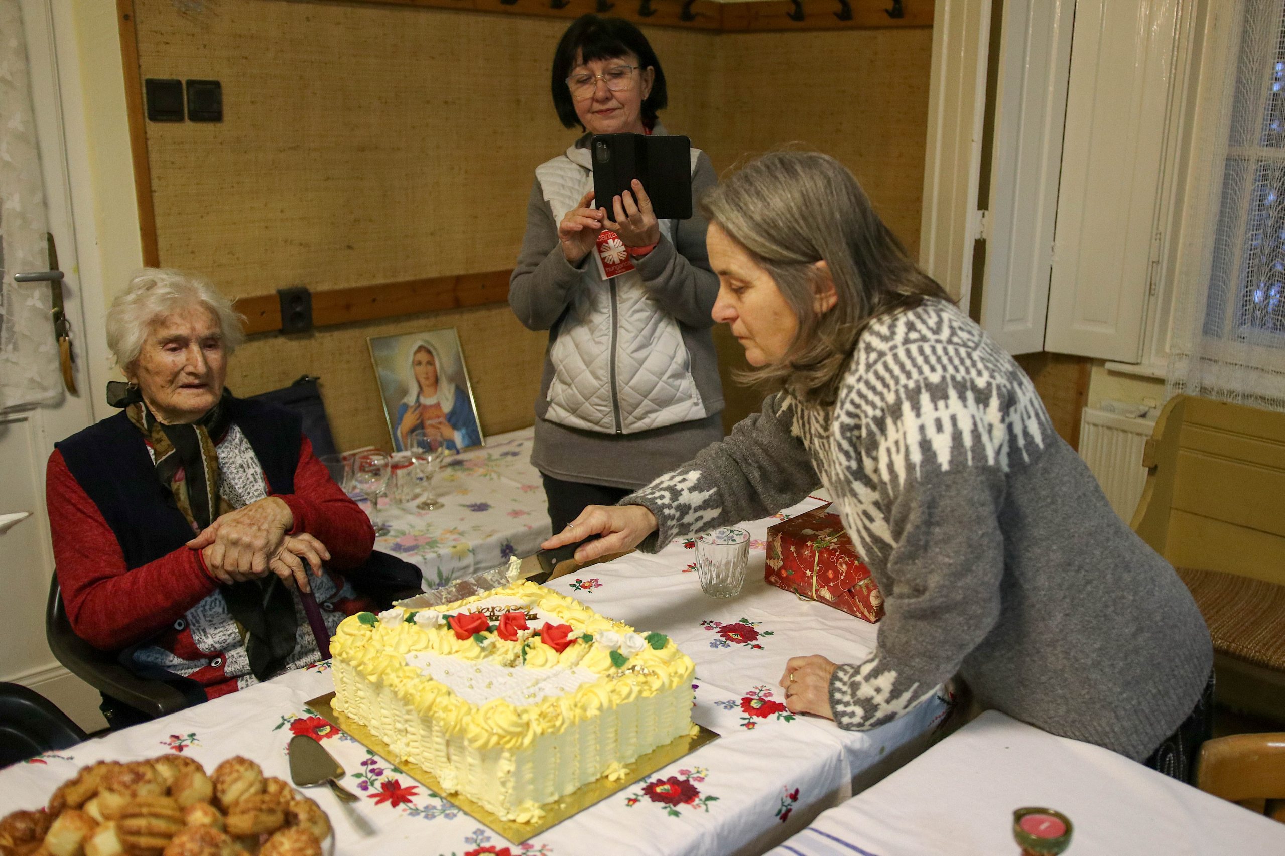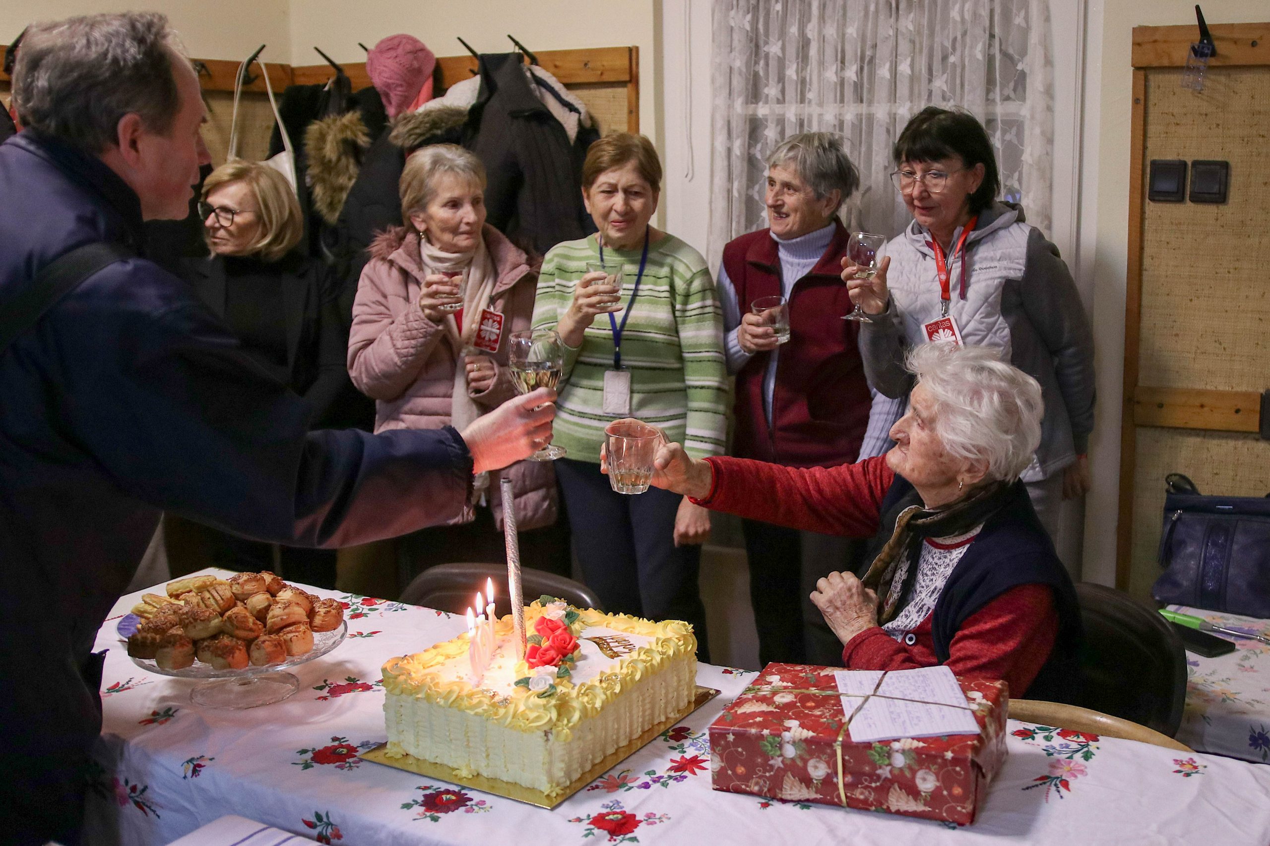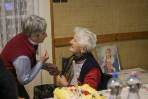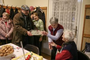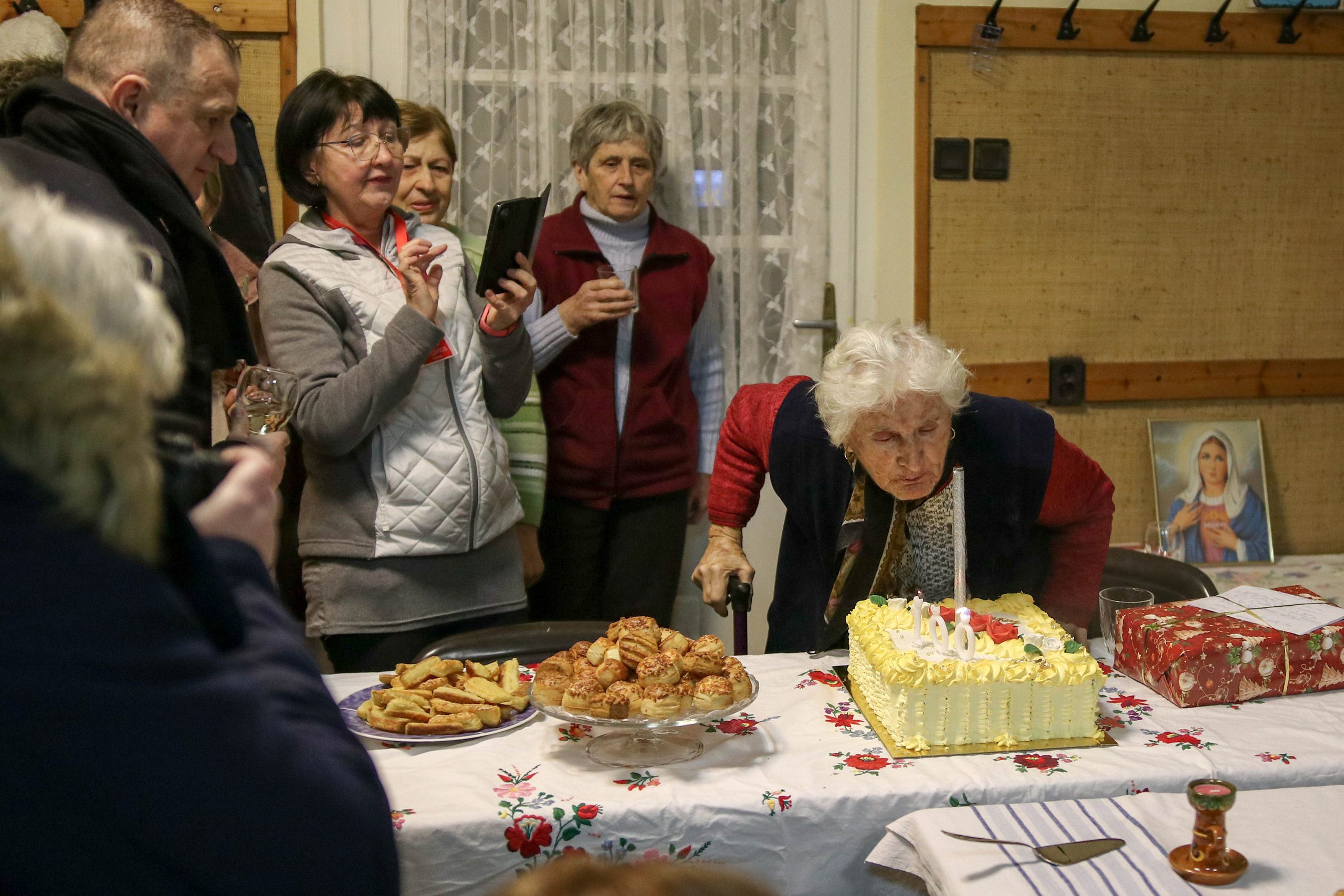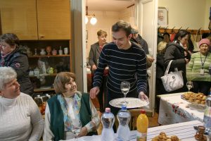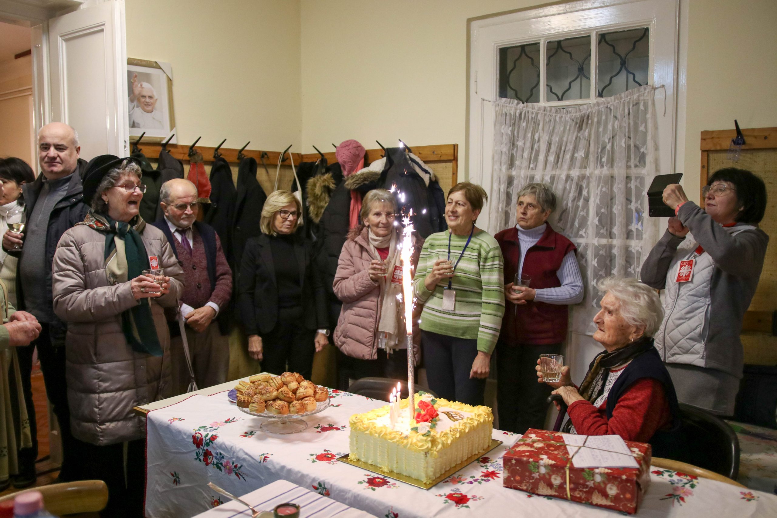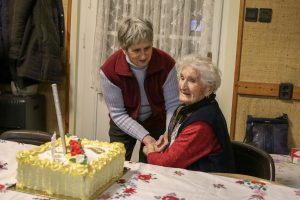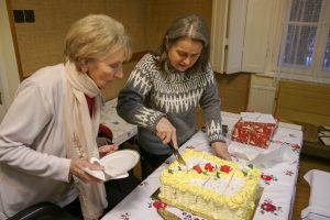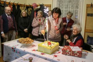 Az ünnepség a szentmisét követően a plébánián folytatódott, ahol Kati néni elfújta a torta gyertyáit, majd a jelenlévőkkel közösen elfogyasztották a születésnapi tortát.