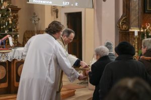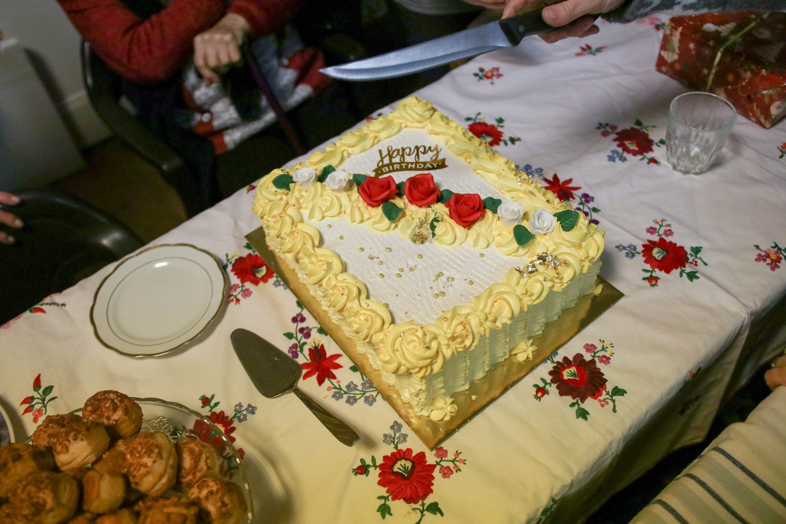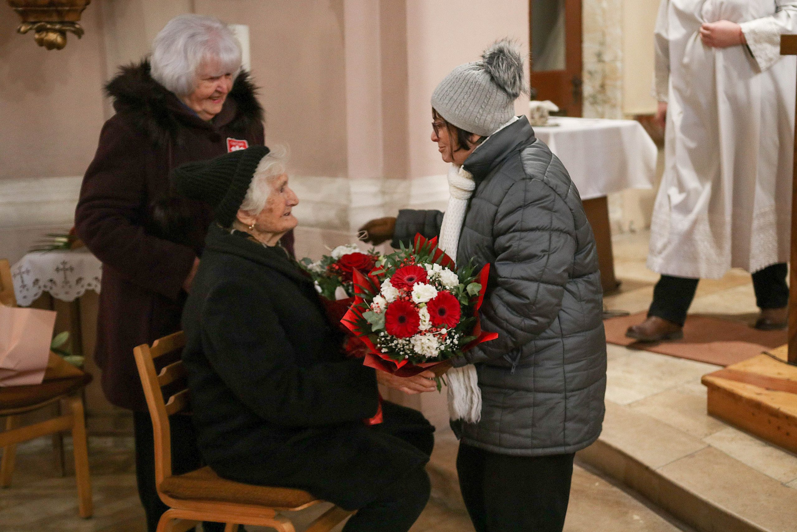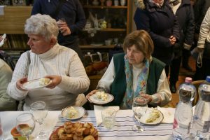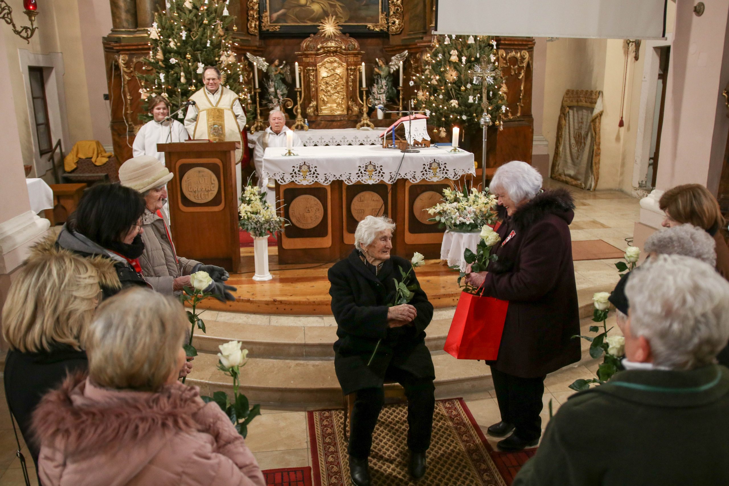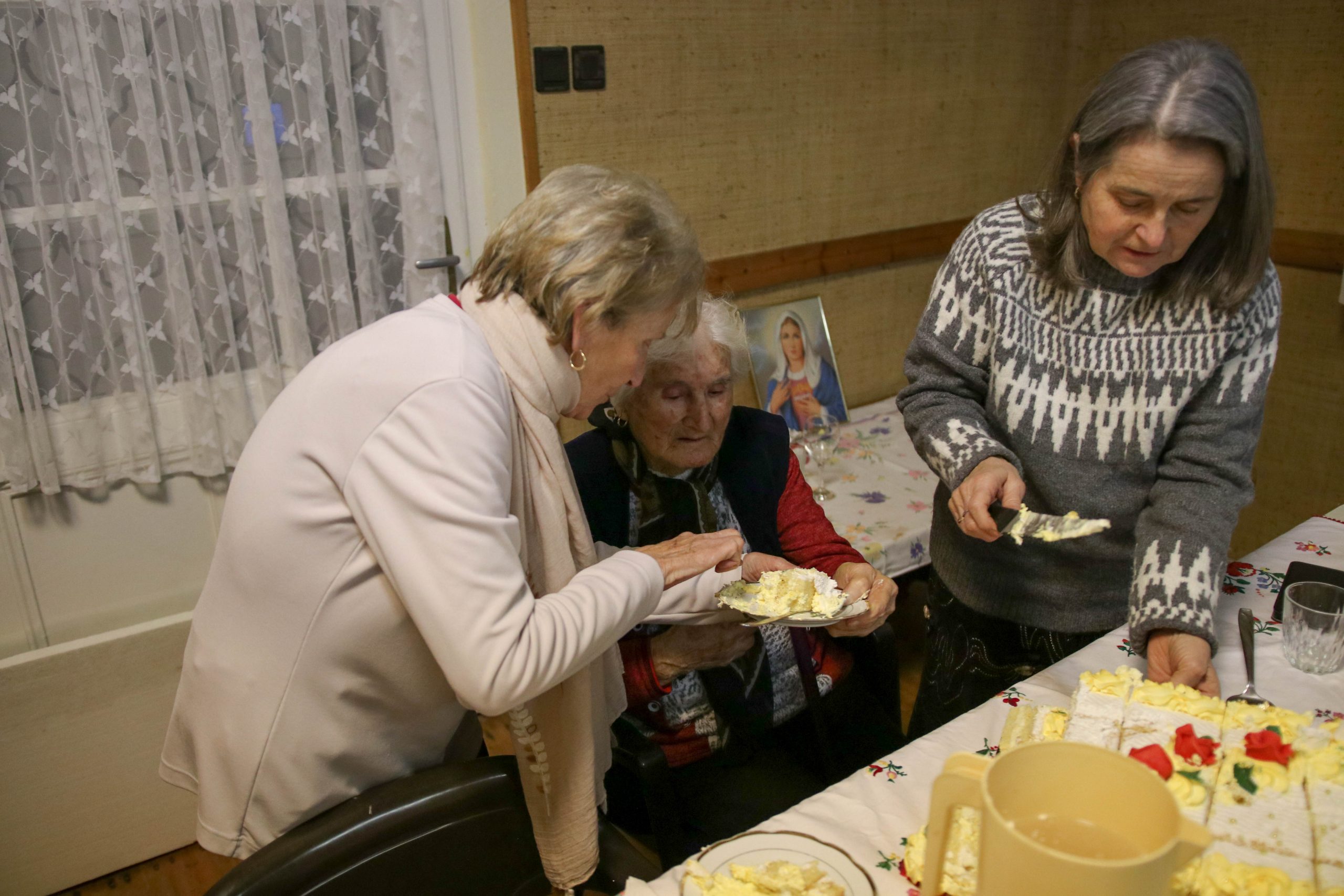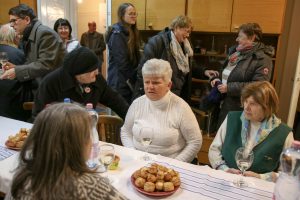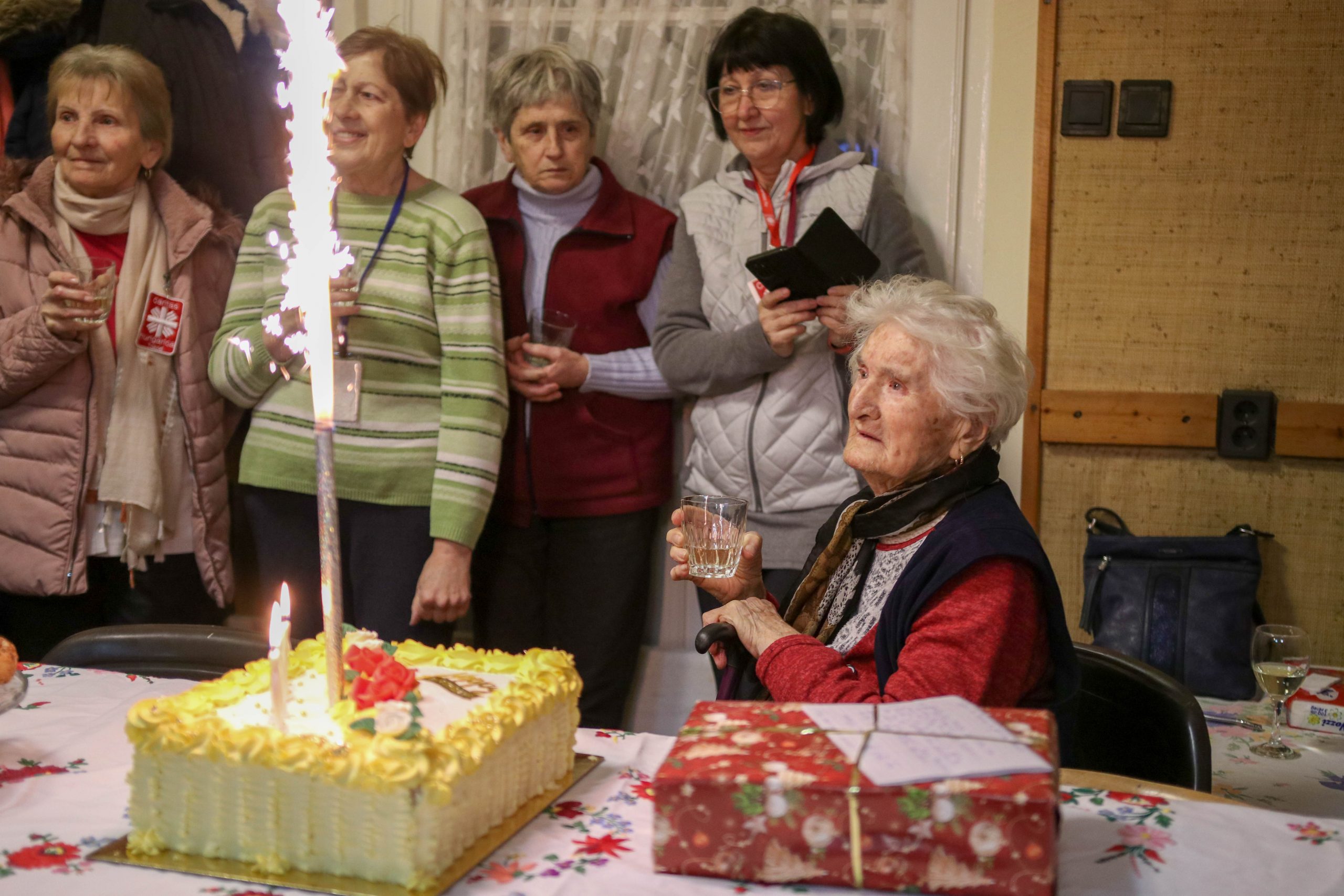 Az ünnepség a szentmisét követően a plébánián folytatódott, ahol Kati néni elfújta a torta gyertyáit, majd a jelenlévőkkel közösen elfogyasztották a születésnapi tortát.
