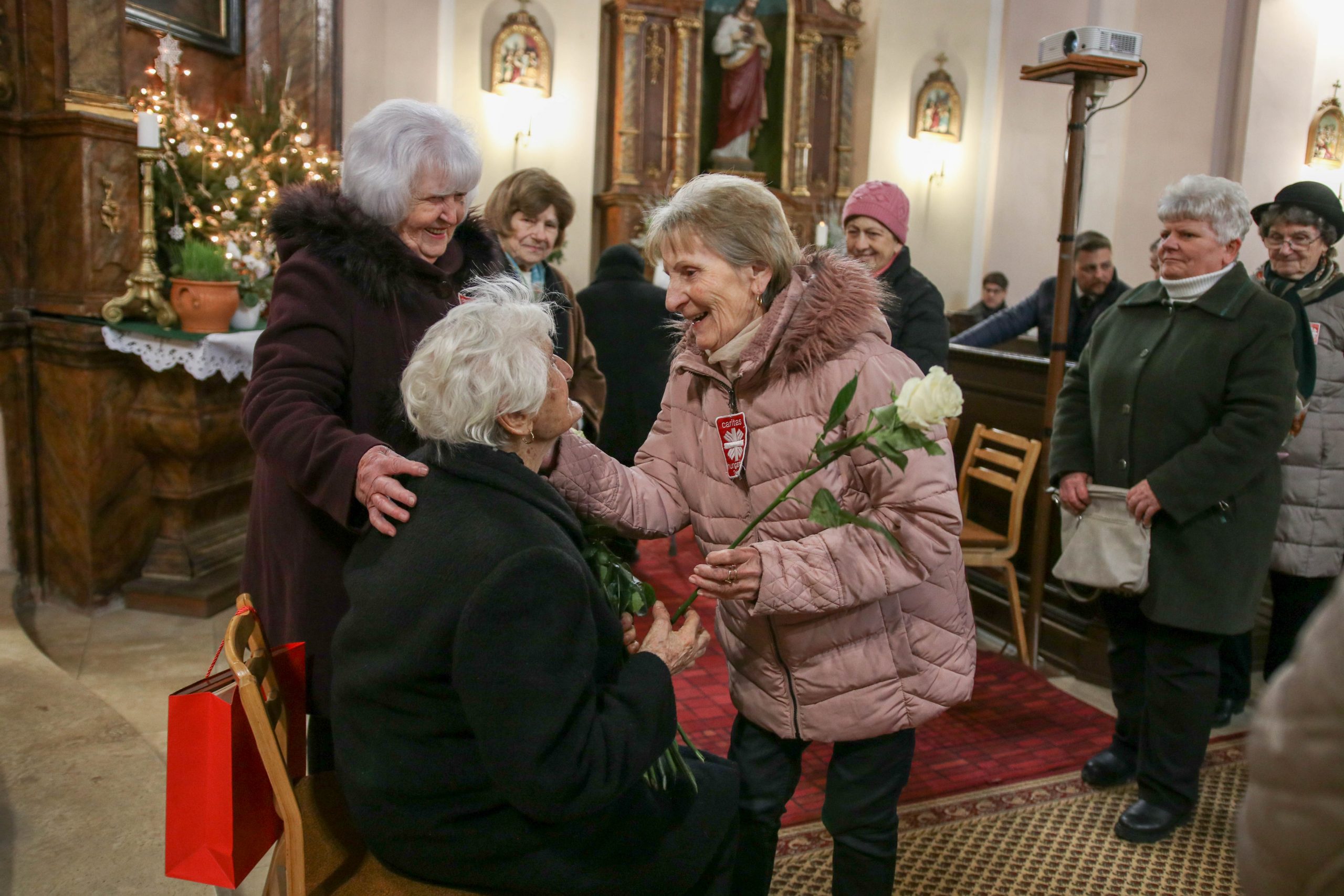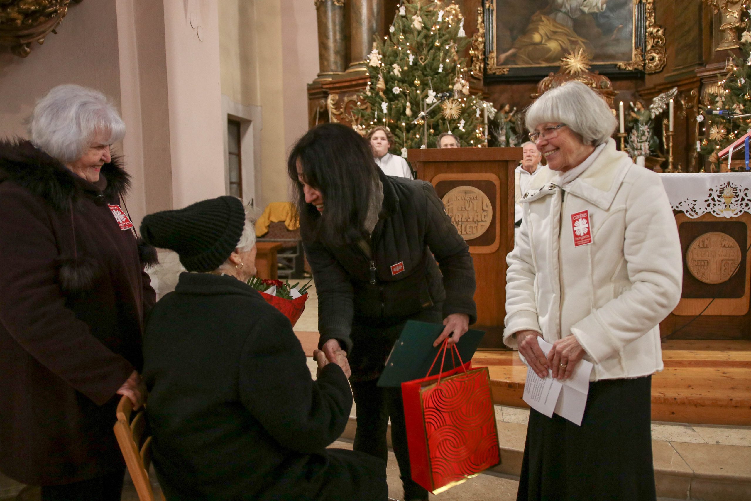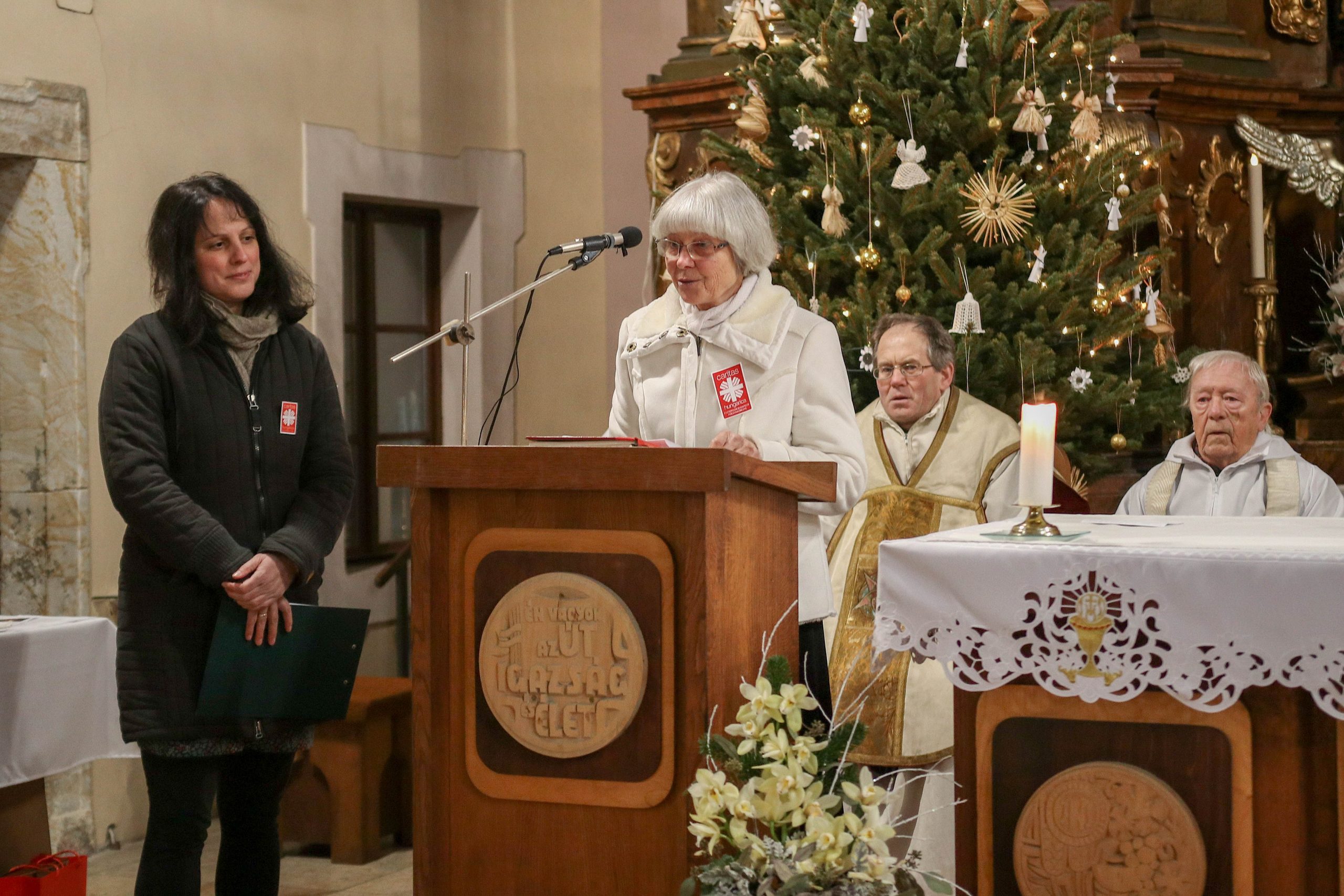 A Karitász képviseletében Ferenczy Rudolfné és Huszárné Kárpáti Adrienn köszönte meg Vigh Károlyné szerető szolgálatát. A továbbiakban a helyi és testvér Karitász csoportok, az egyháztestület és a vöröskereszt tagjai is köszöntötték az ünnepeltet.